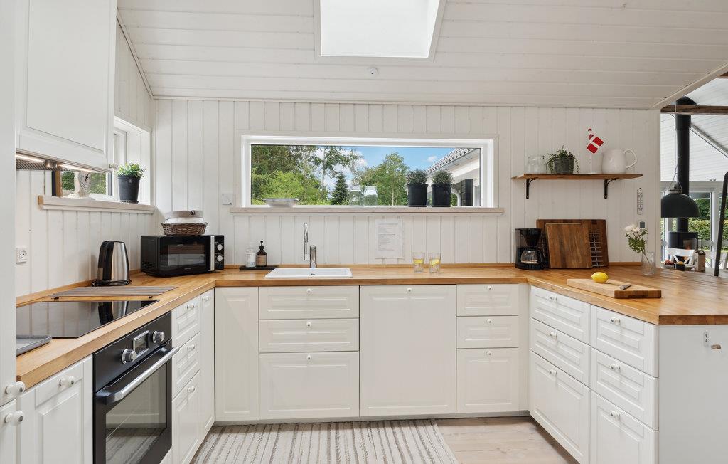 Tilbring en dejlig ferie i dette tiltalende og lyse feriehus, ikke langt fra Silkeborg midtby. Her venter jer en afslappende ferie. Brug den store flotte stue med høje lofter som et centralt samlingspunkt for familien til spillehygge, filmaftener eller fælles tilberedning af lækre måltider. Om aftenen kan I nyde varmen fra brændeovnen, mens I ser en underholdende film, og I kan også kigge ud i haven. På badeværelset kan I forkæle jer selv med wellness i spabadet.