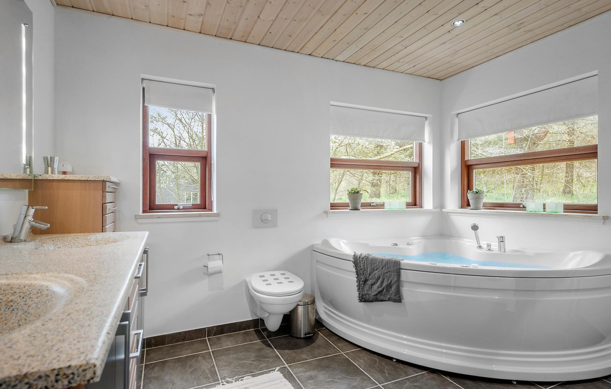 Nyd godt af indretningen, der præges af et åbent boligkoncept med loft til kip og mange fine faciliteter, der gør hverdagen her til en leg. Tænd op i brændeovnen og hyg jer med madlavningen, som børnene kan bidrage til fra højstolene ved køkkenøen. Efter aftensmaden kan I rykke over i stuen med brætspil eller en god film på tv'et, og skal det gøres lidt ekstra lækkert, kan I runde aftenen af med en tur i boblebadet, måske med en god drink?