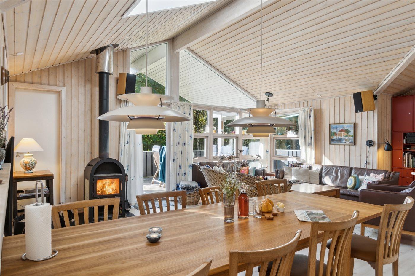 Sommerhuset egner sig til 8 personer samt 1 barn op til 3 år. 2 af sovepladserne er kun egnet til større børn (4-11 år). Ferieboligen er på 113 m² og er bygget i 2000. Det er tilladt at medbringe 2 husdyr. Ferieboligen er udstyret med energibesparende luft til luft varmepumpe. Ferieboligen har vaskemaskine. Tørretumbler. Frysekapacitet på 46 liter. Der er desuden brændeovn. Til de små er der 1 stk. barnestol.