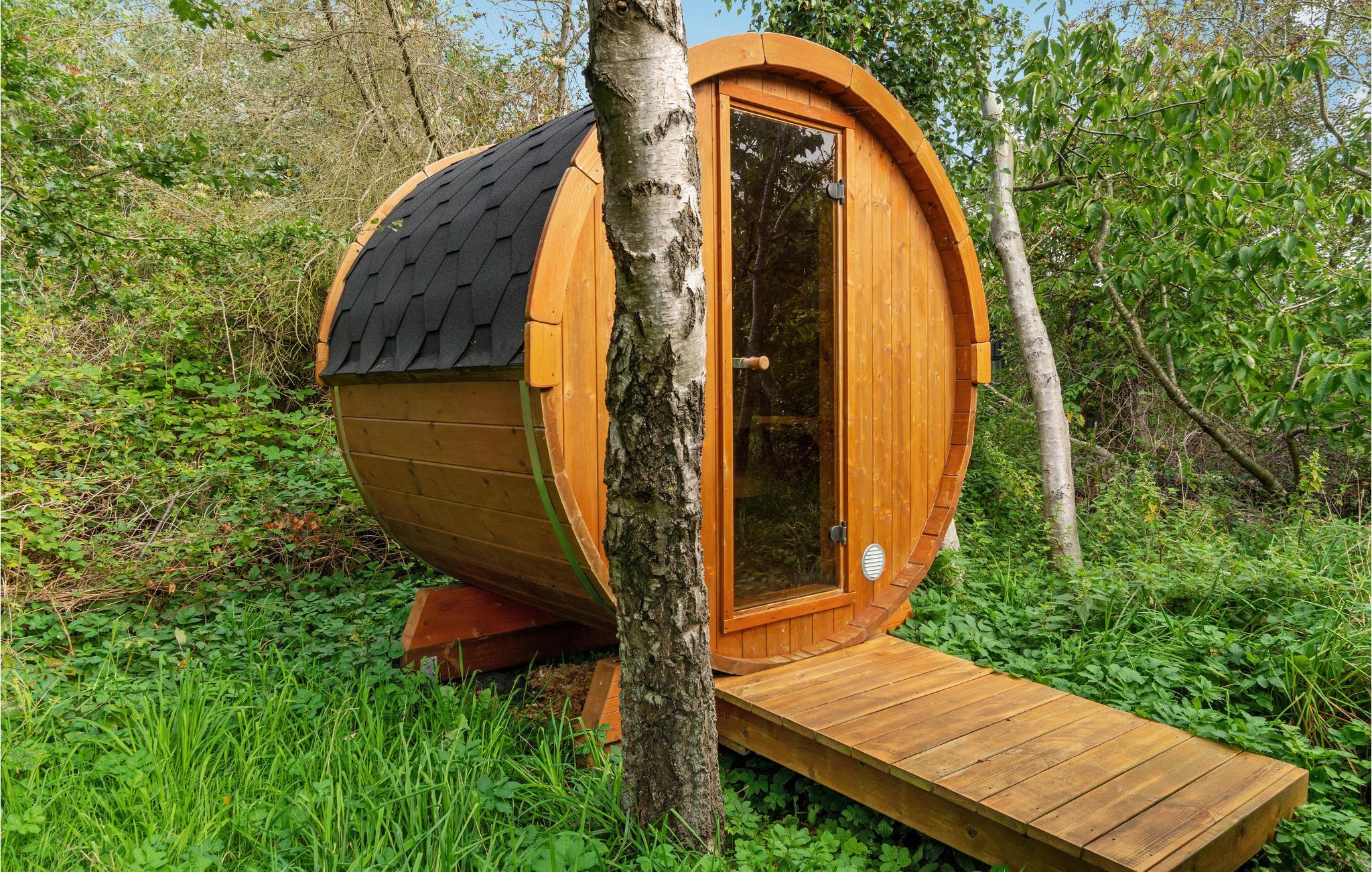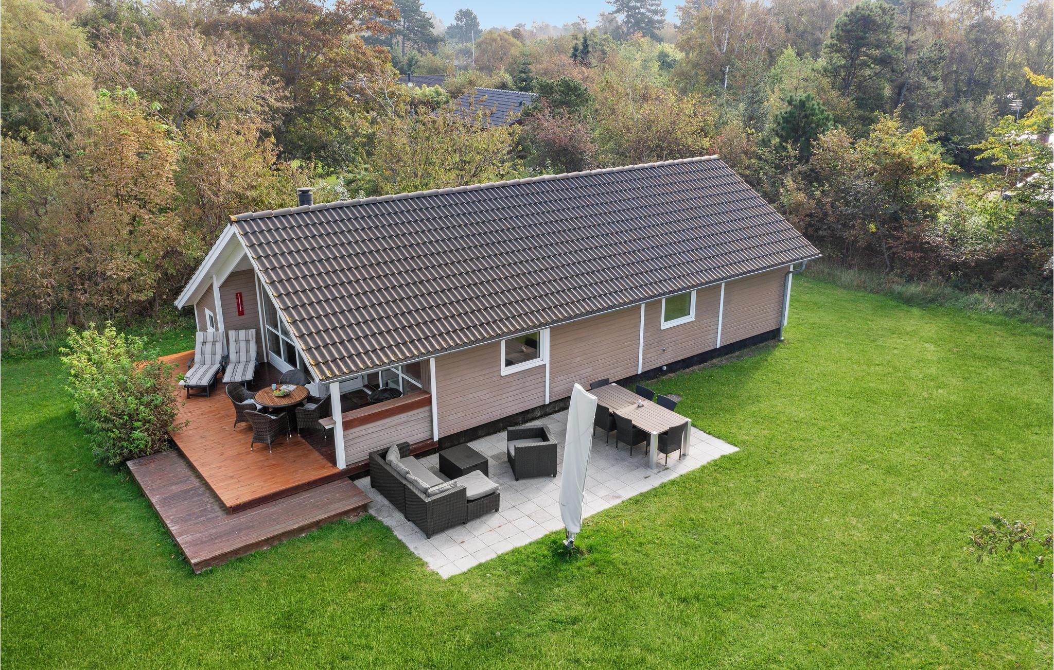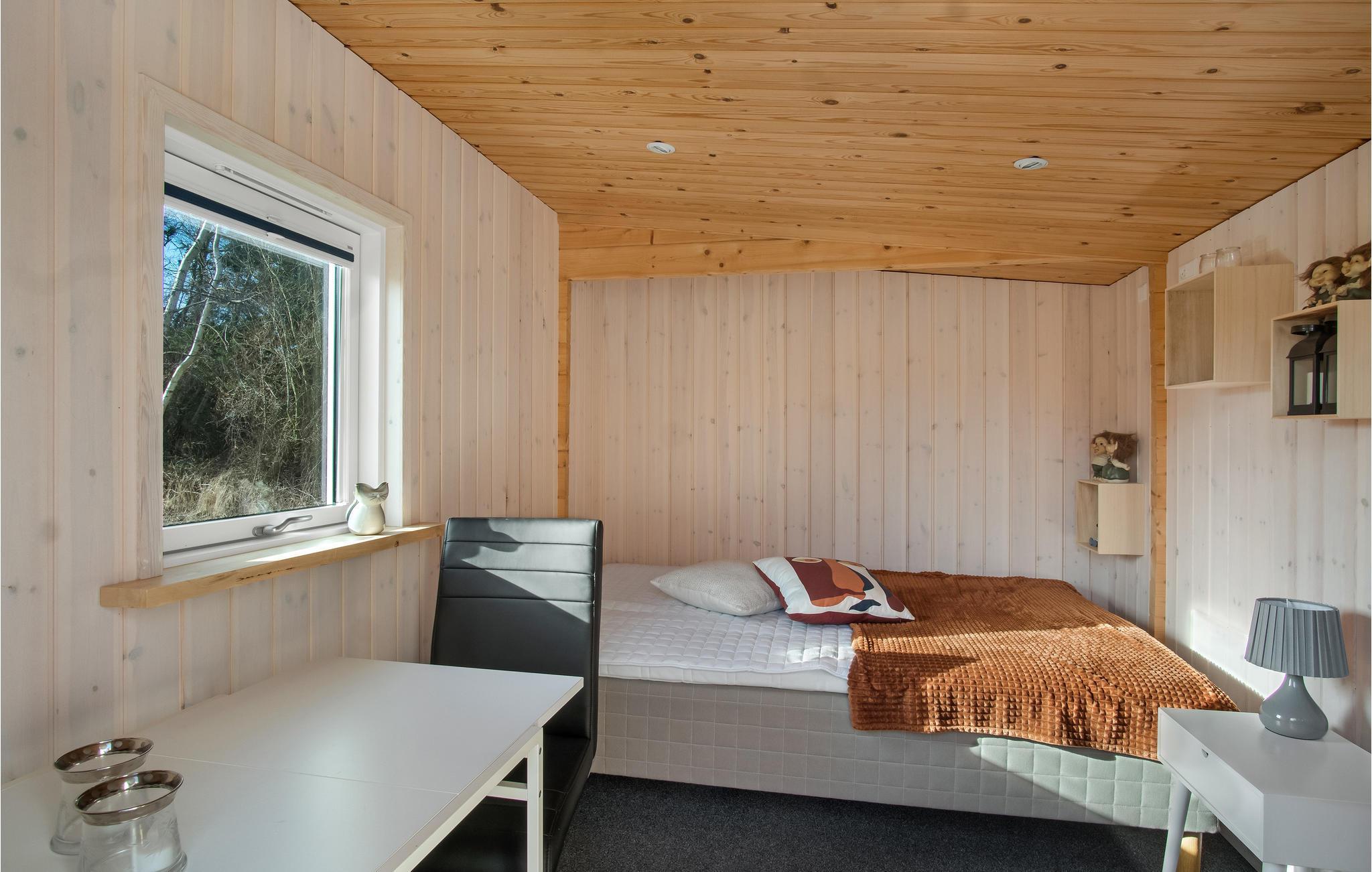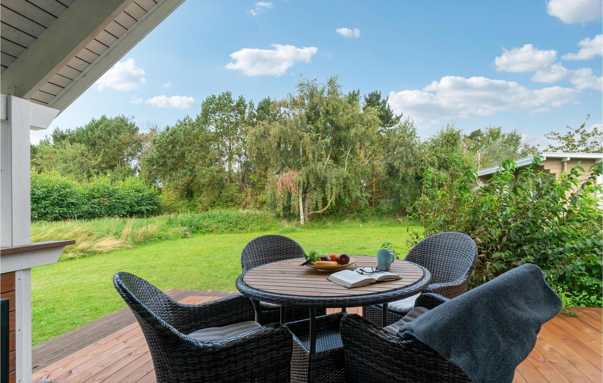 Glæd jer til at slappe af med hele familien i de lyse værelser i dette komfortable sommerhus. Træelementerne og den moderne indretning skaber en hjemlig atmosfære, mens glasfronten lukker masser af dagslys ind i huset. Lav mad her med udsigt over haven, nyd måltiderne sammen ved det lange spisebord, også med en vidunderlig udsigt over haven. Senere kan I finde jer godt til rette i sofaen, efter en dejlig dag på stranden eller en udflugt. Tænd op i brændeovnen om aftenen og sid behageligt sammen i lang tid. Feriehusets udendørsområde indbyder til mange glade timer i det fri. Nyd solen på terrassen, mens jeres børn løber rundt og leger. Slap af i den udendørs sauna og dæk derefter op til en lækker grillmiddag.