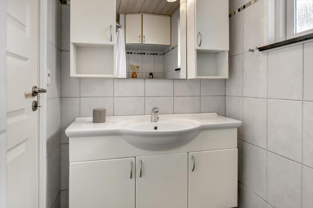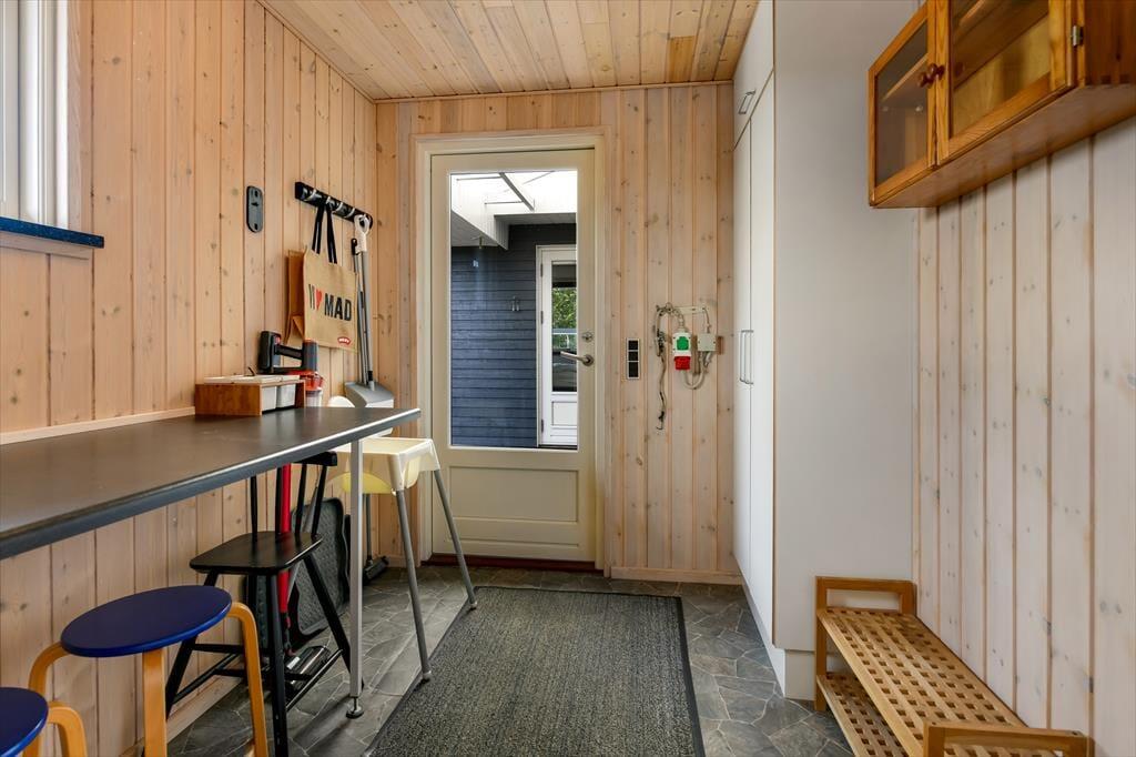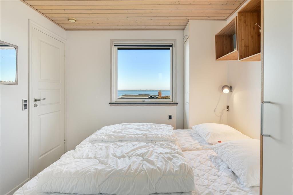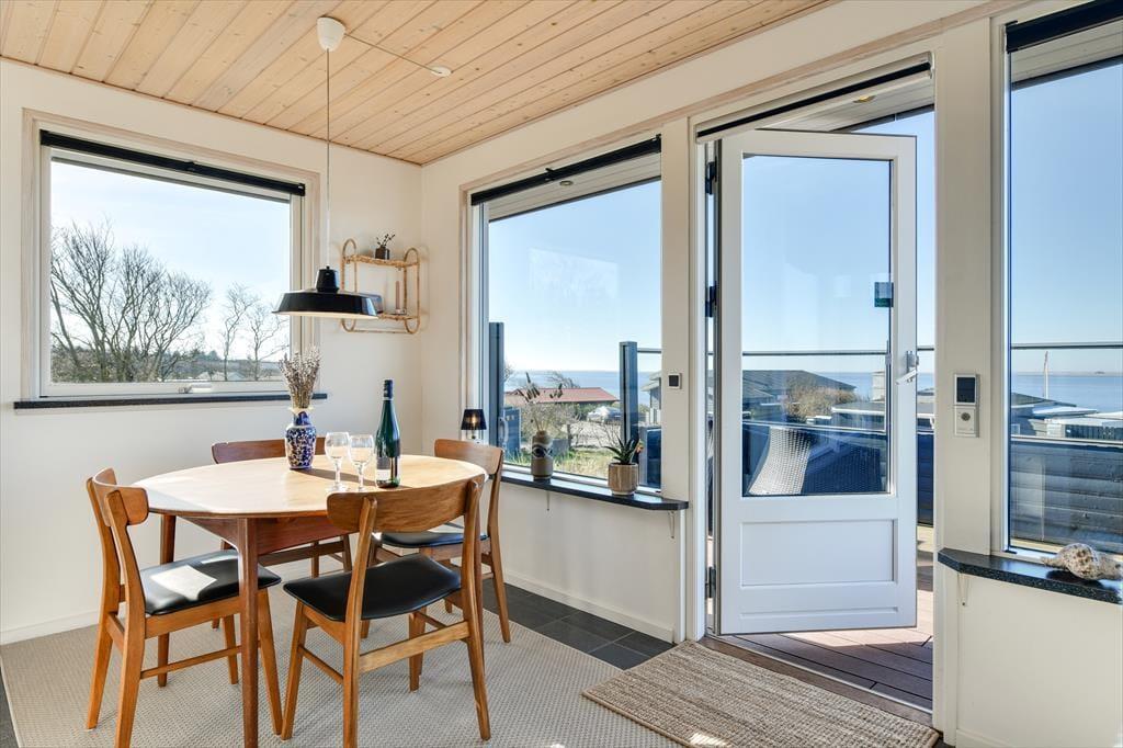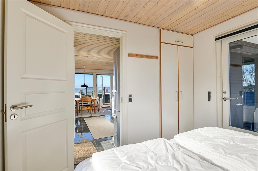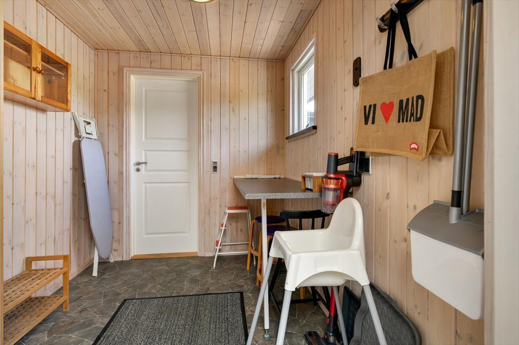 Allerede når du træder ind i sommerhuset, mødes du af en lys og venlig atmosfære. Indretningen er gennemtænkt og harmonisk, og rummene fremstår både indbydende og praktiske, så du kan føle dig hjemme fra første øjeblik. Store vinduespartier sørger for, at dagslyset strømmer ind og forbinder dig med naturens skiften udenfor. Og netop udsigten spiller en helt særlig rolle her – selv fra sofaen kan du lade blikket vandre ud over vandet og lade tankerne flyve i takt med mågerne. Du kan også tænde op i brændeovnen og nyde varmen og flammernes spil, mens du læser en god bog. Alt i huset emmer af kvalitet og komfort, så du har de bedste rammer for både afslapning og hyggelige stunder med dem, du holder af.