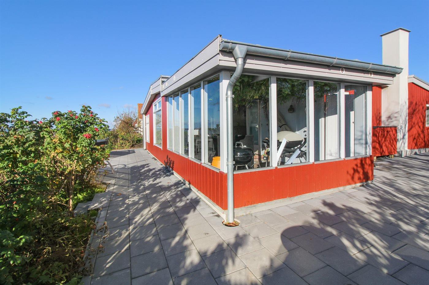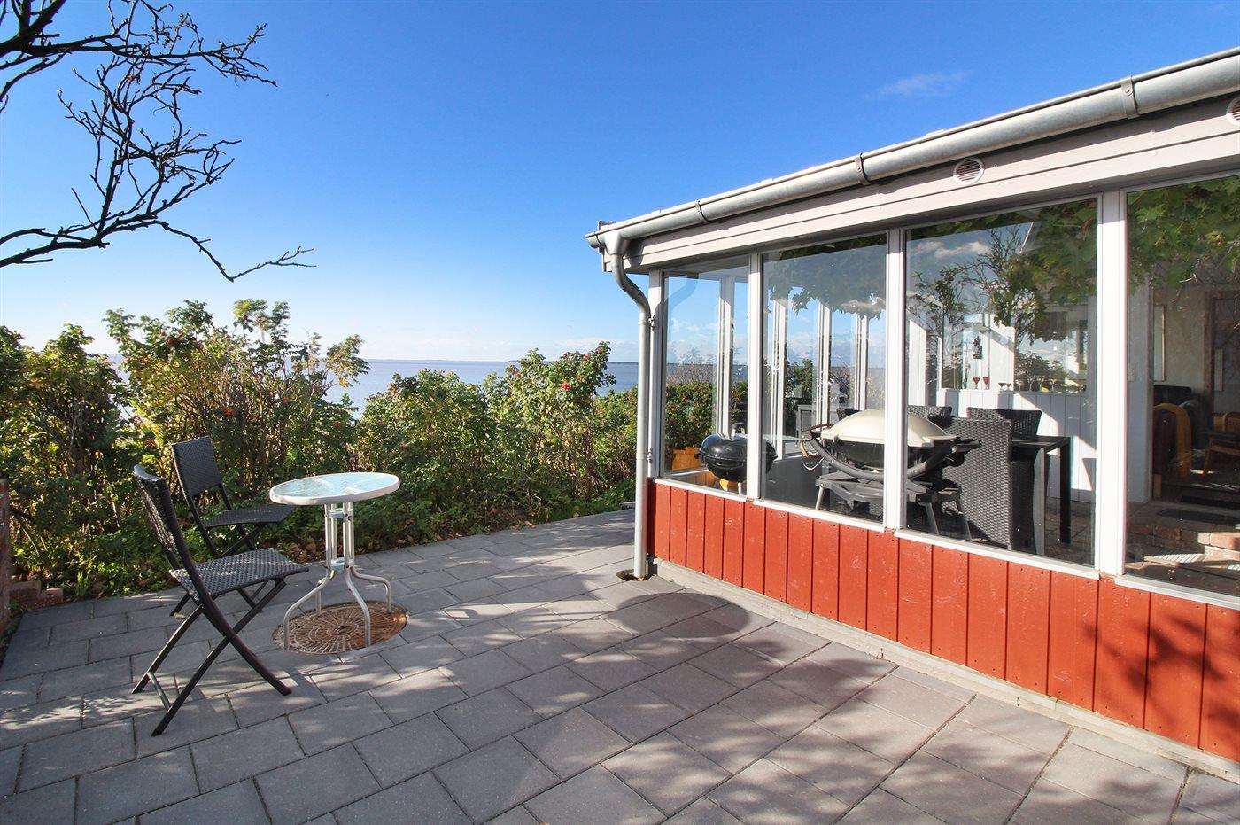 Ferieboligen er beliggende på en 650 m² stor naturgrund. Der er 20 m til havet. Nærmeste forretning er beliggende i en afstand af 2500 m. Der er en golfbane i en afstand af 4500 m. Til ferieboligen hører 90 m² terrasseareal. Ligeledes er der adgang til udestue. Grill til rådighed. Der er installeret stik til opladning af elbil. Parkering ved ferieboligen.