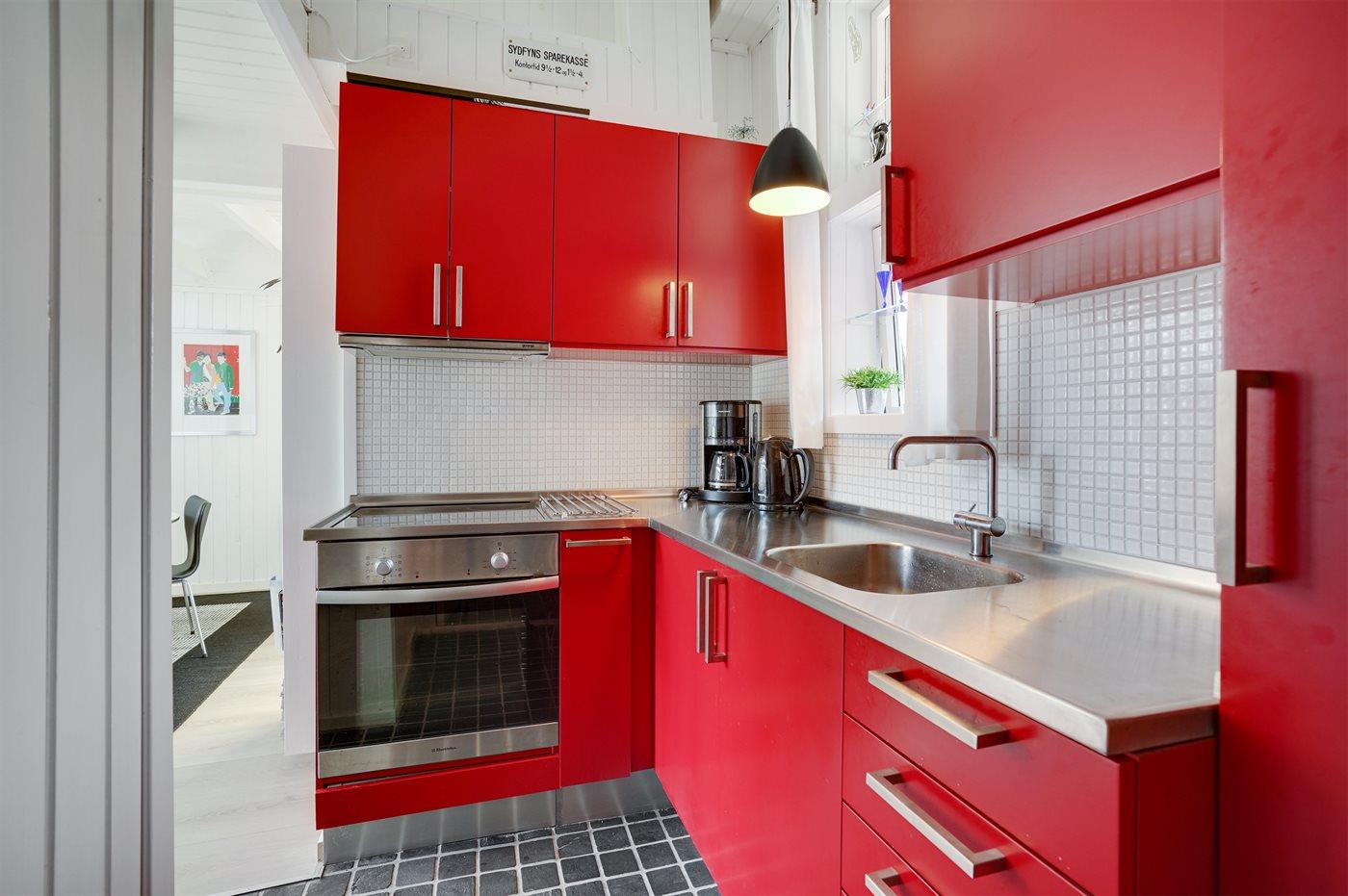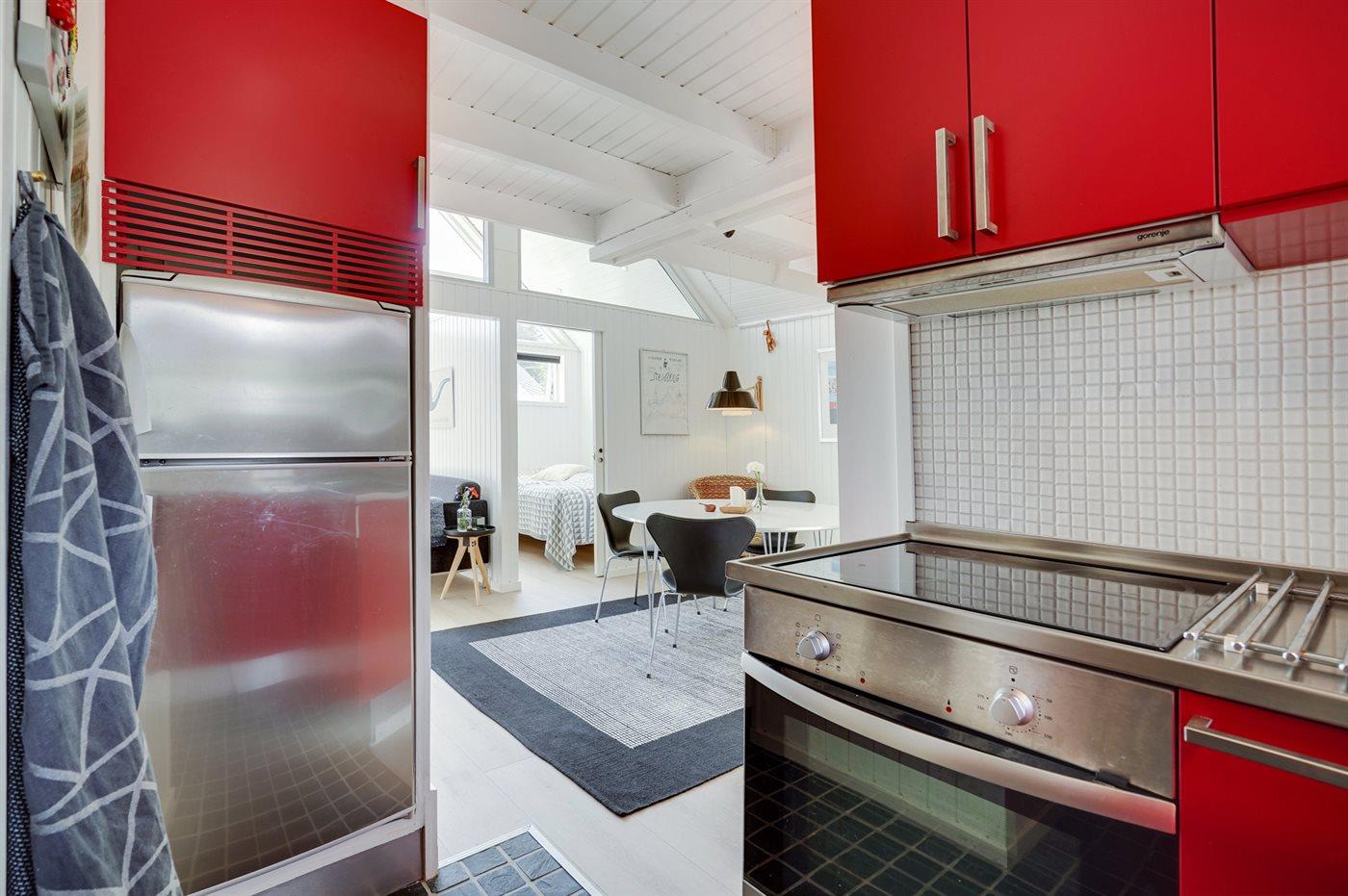 Køkkenet er udstyret med 1 køleskab. Der er 4 keramiske kogeplader, varmluftovn.