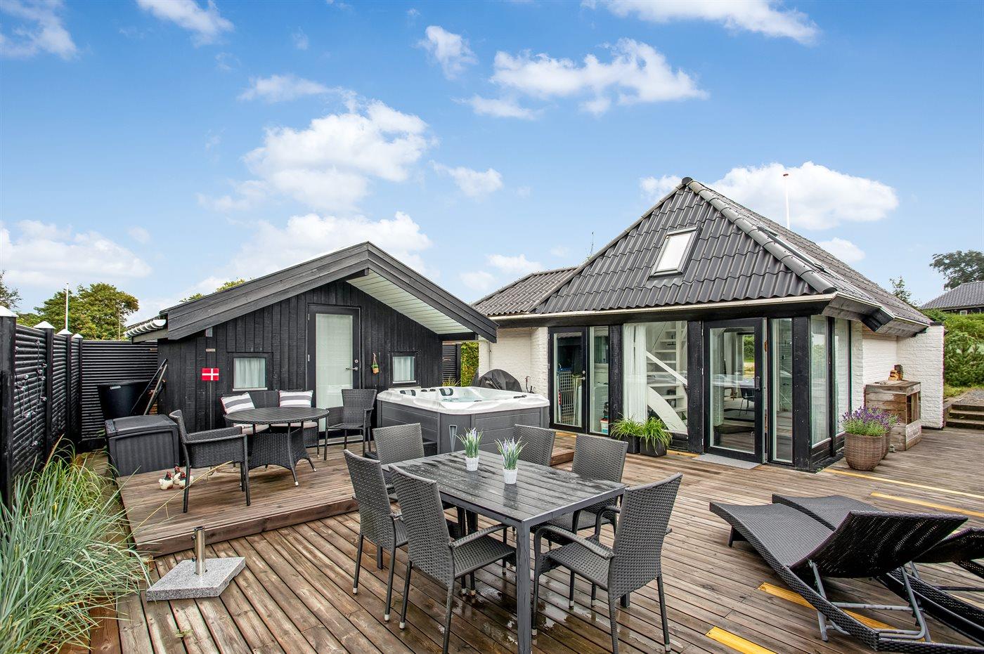 Ferieboligen er beliggende på en 280 m² stor naturgrund. Der er 150 m til havet. Nærmeste forretning er beliggende i en afstand af 2500 m. Der er en golfbane i en afstand af 4500 m. Til ferieboligen hører 80 m² lukket terrasseareal. Bålsted. Udendørs sauna. Gasgrill står til rådighed. Parkering ved ferieboligen.