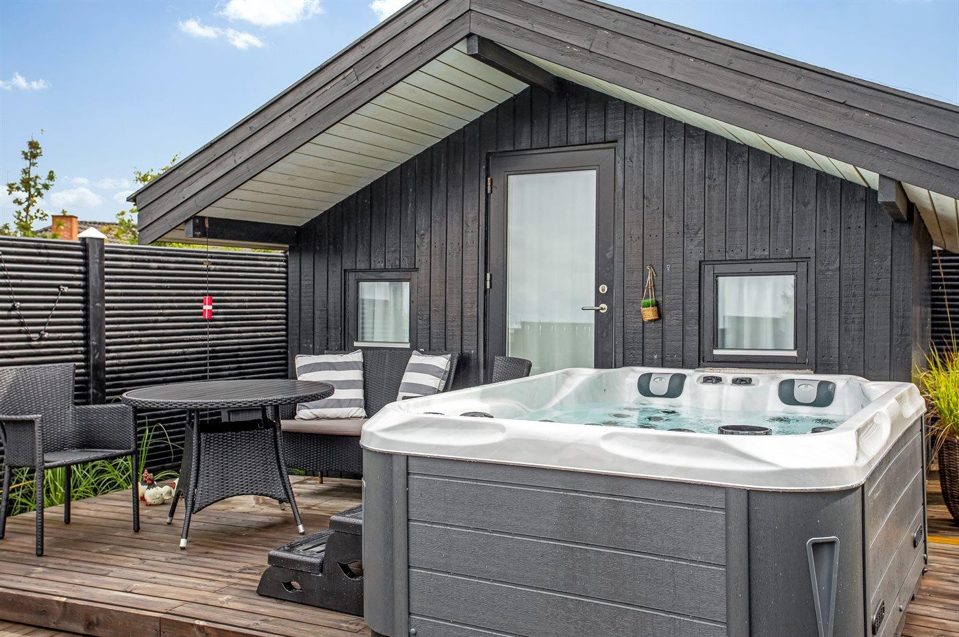 Der er mulighed for afslapning i udendørs standvandsspa til 3 personer.