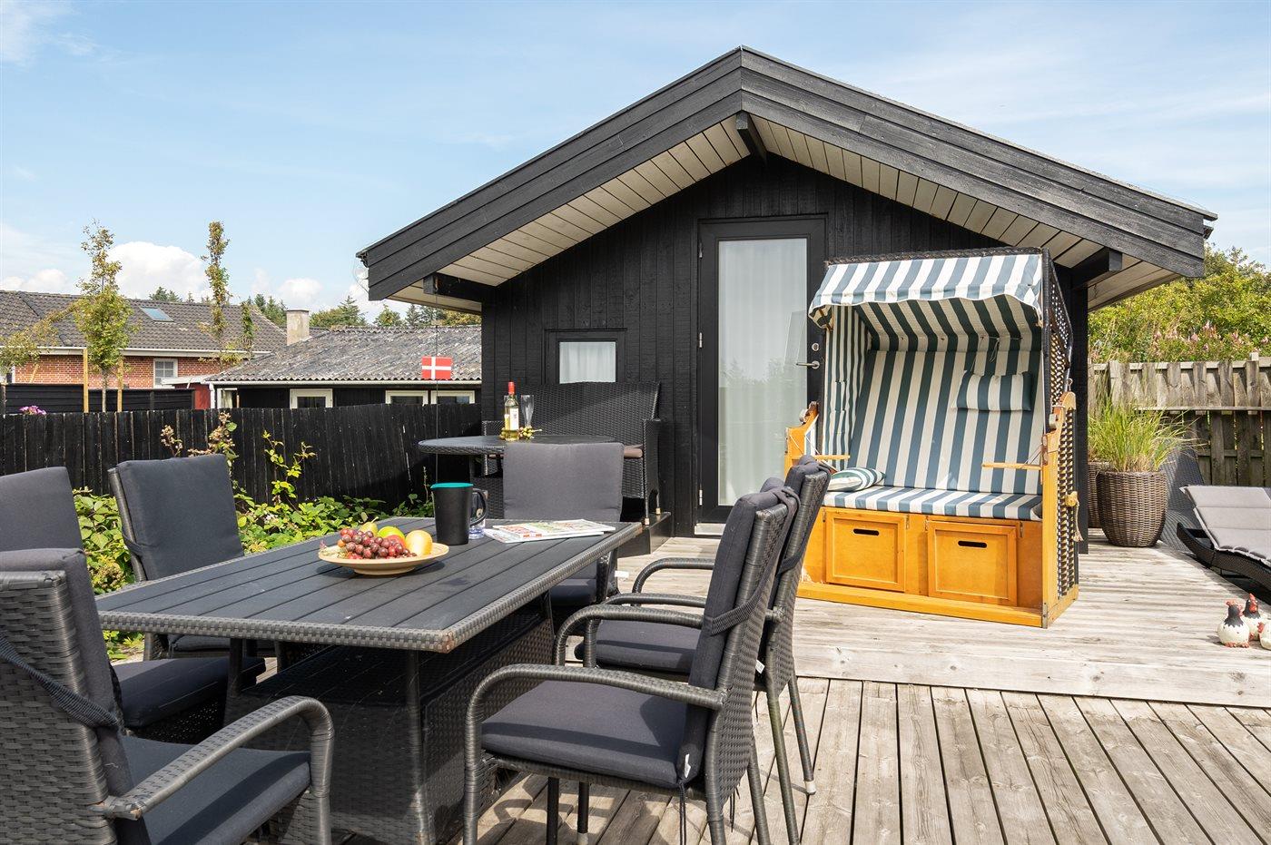 Dette skønne og velholdte sommerhus ligger lige midt i Nationalpark Vadehavets enestående natur med hav, strand og skov. Fra sommerhusets dejlige terrasse, hvor der bl.a. findes udendørs spa og sauna er der udsigt over Ho bugt.