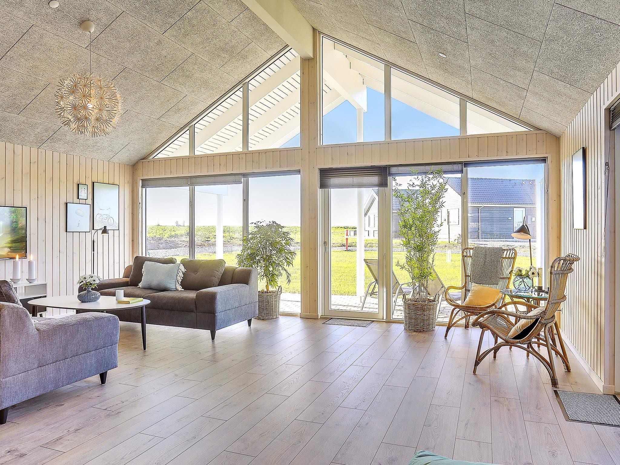 Aktivitetsrummet har bar med eget køleskab, og opholdsrummet har brændeovn til de koldere dage.