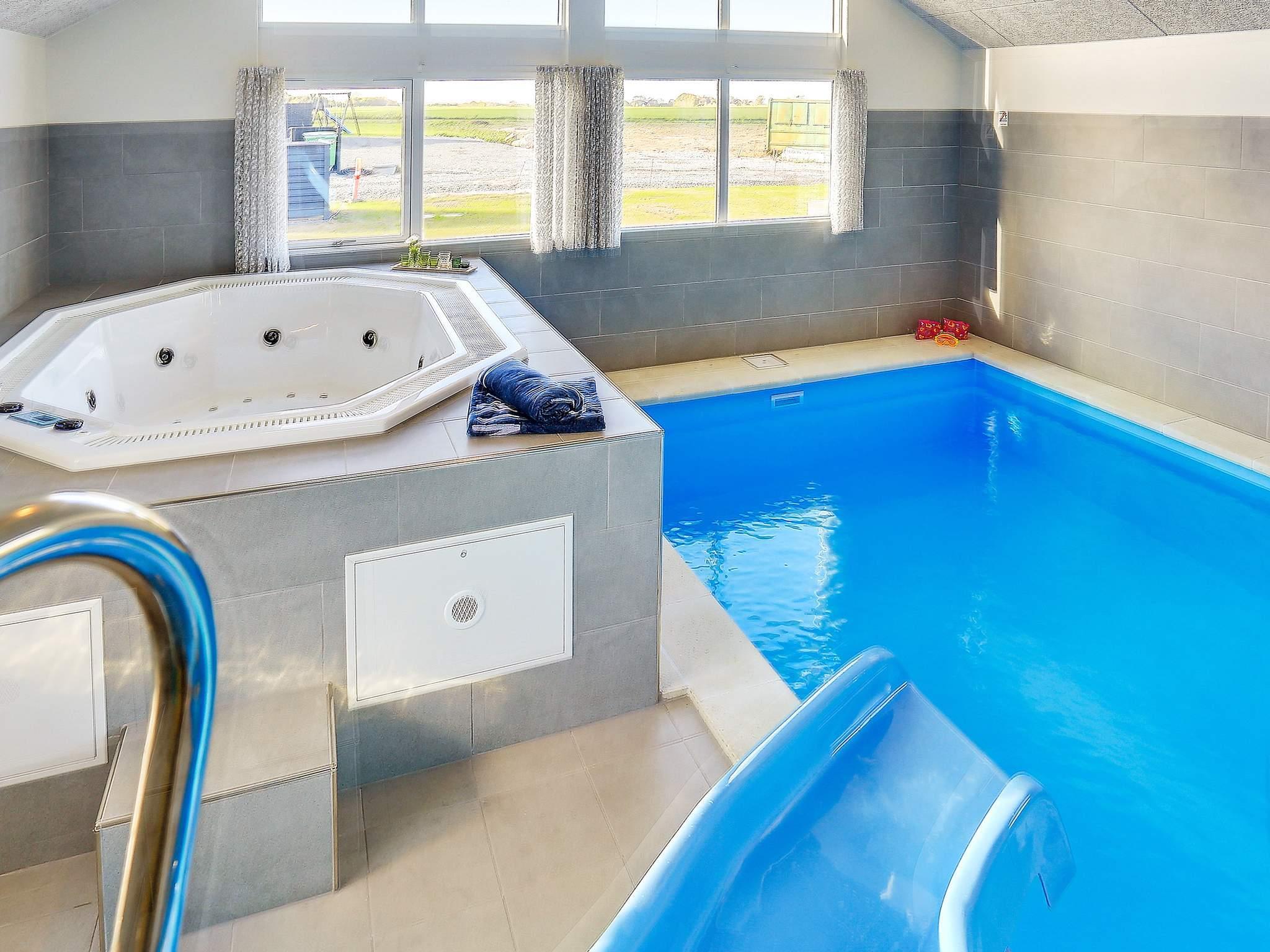 I husets ene fløj kan der både bades og svømmes i den 23 m2 store swimmingpool med vandrutsjebane og modstrømsanlæg. Ønsker I at slappe helt af, kan I nyde det lækre 6-personers spabad eller saunaen, der også har plads til 6 personer.