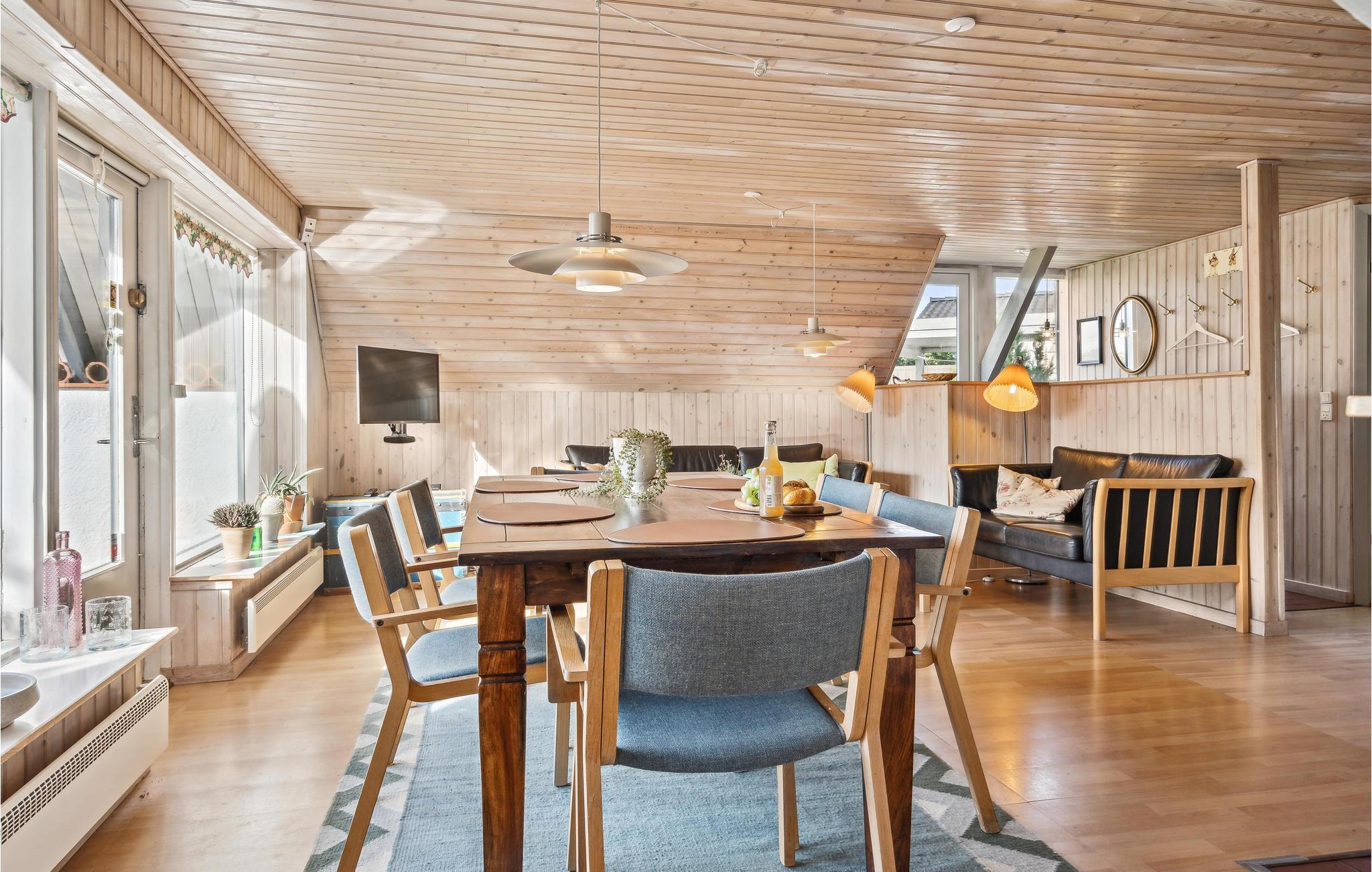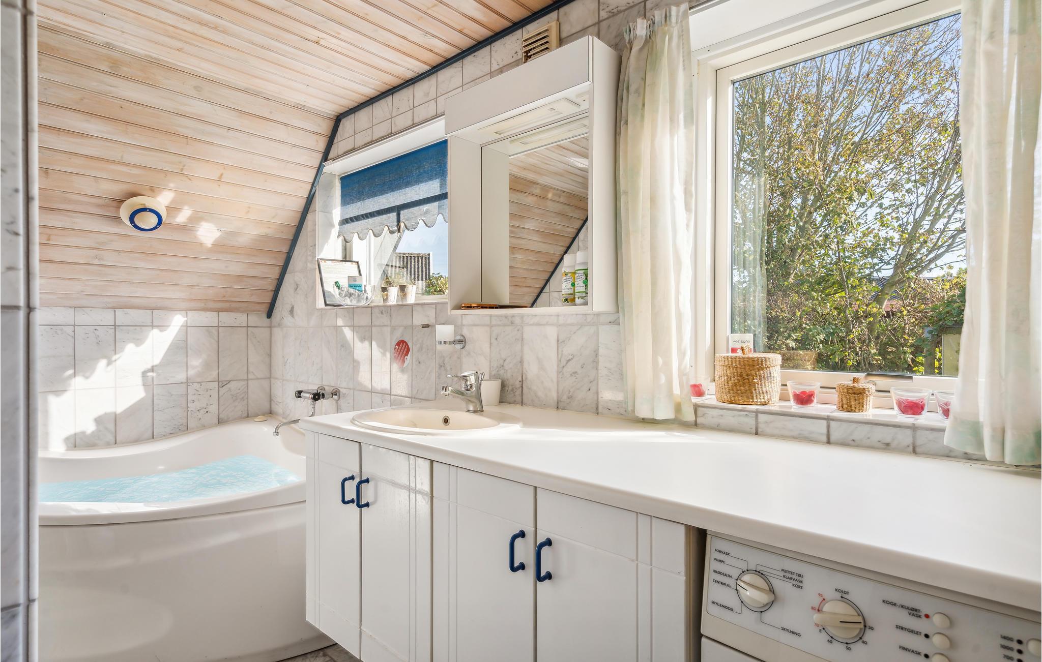 Velkommen til dette indbydende sommerhus, hvor der er lagt op til nogle dejlige feriedage med familien. Boligen er lyst og hjemligt indrettet, så her får I gode rammer til at hvile ud efter dagens program. Der er flere hyggekroge i den klassiske stue, hvor man kan sætte sig til rette med en kop kaffe eller en god bog, og i saunaen kan I få varmen efter et dyp nede ved vandet. Glæd jer også til altanen, som giver jer et herligt sted at læne jer tilbage, når I trænger til lidt frisk luft. Huset er omgivet af en ugeneret have, hvor I kan grille på terrassen eller solbade på græsplænen.