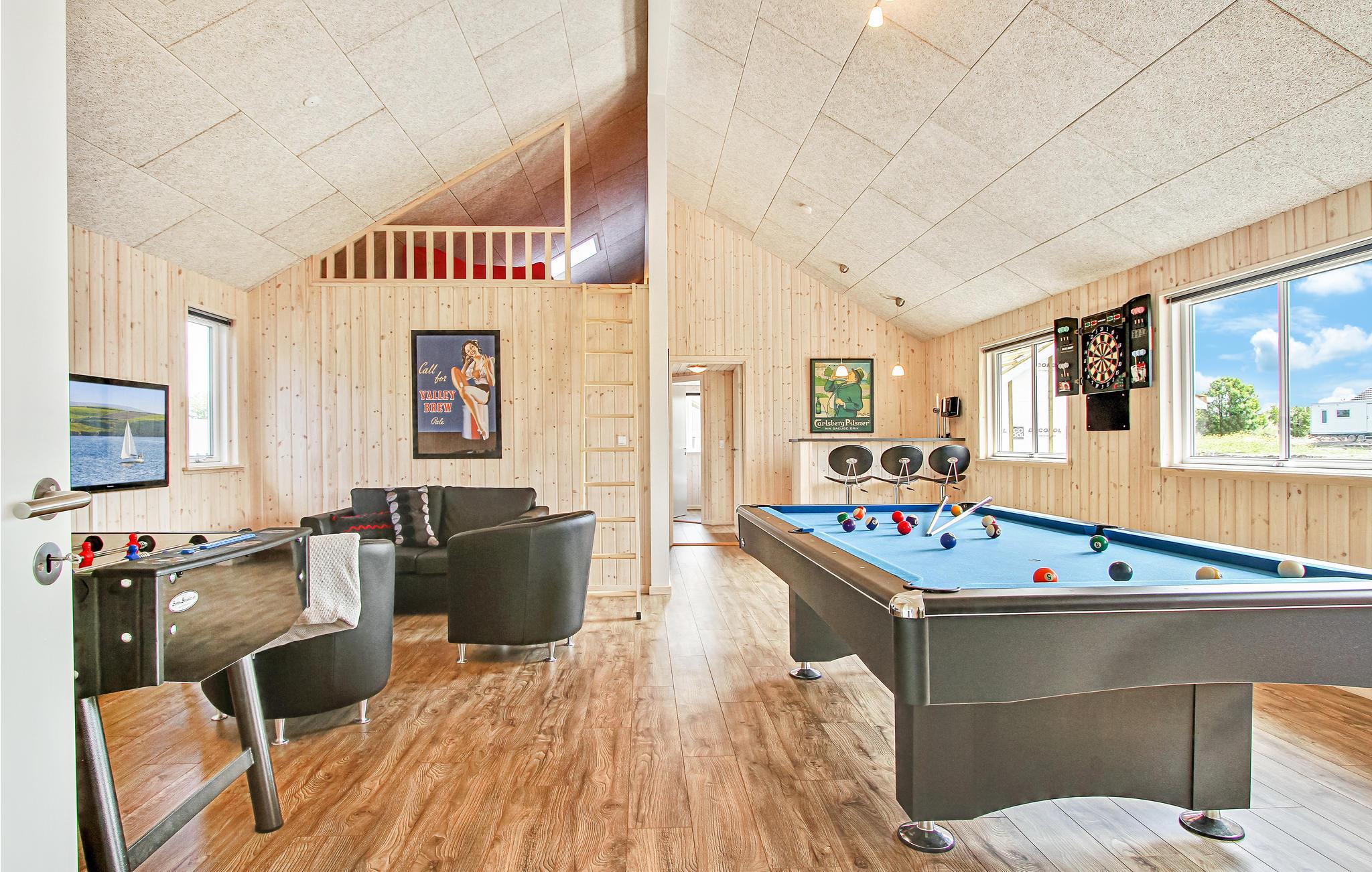 Spændende og flot feriehus, hvor der er lagt vægt på såvel god indretning som smag for de små detaljer. Huset passer til hele familien, hvor børnene kan bruge energien i den store poolafdeling. Derudover findes et aktivitetsrum med bordtennis og billard samt en lille bar med køleskab, hvor de foretrukne drinks kan mikses. Den store hems vil helt sikkert være et hit hos børnene. Husets køkken er meget veludstyret og dimensioneret til husets størrelse med bl.a. to komfurer og to opvaskemaskiner samt god plads i køleskab og frys. Huset ligger i et dejligt og naturskønt område, og den familievenlige sandstrand ligger indenfor gåafstand fra huset. Beliggenheden er også perfekt til skønne vandreture i den smukke natur. Aconto forbrug og slutrengøring betales kontant i huset sammen med de øvrige forbrugsomkostninger. Sengelinned, håndklæder, barneseng og –stol kan lejes mod betaling på det lokale kontor.