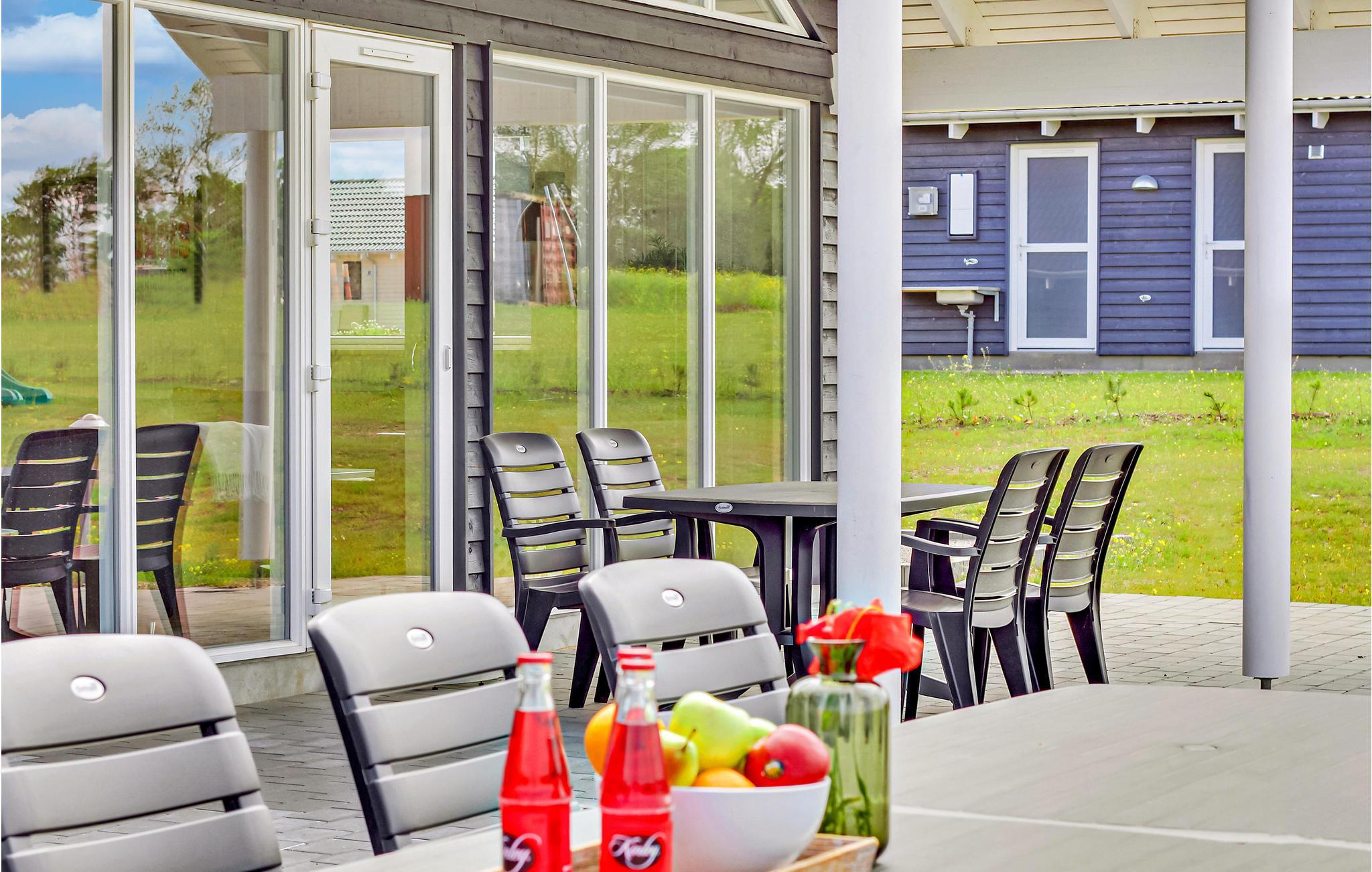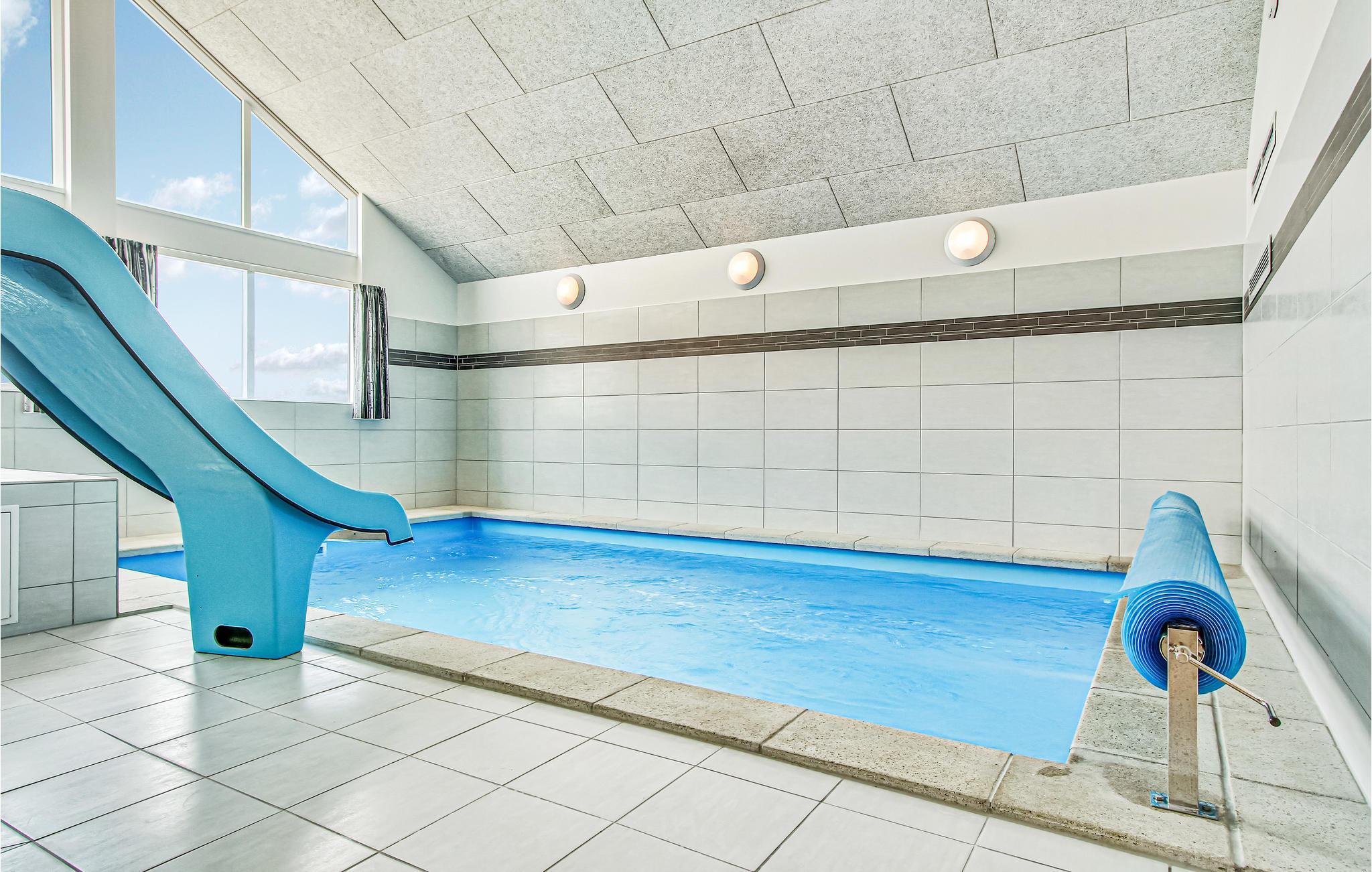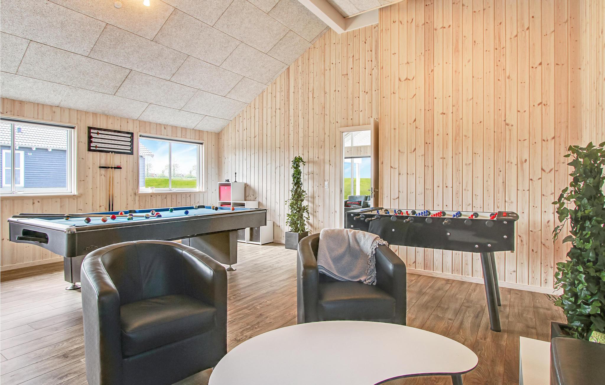 Flot feriehus med stor pool, aktivitetsrum og tæt på familievenlig sandstrand i naturskønne omgivelser.