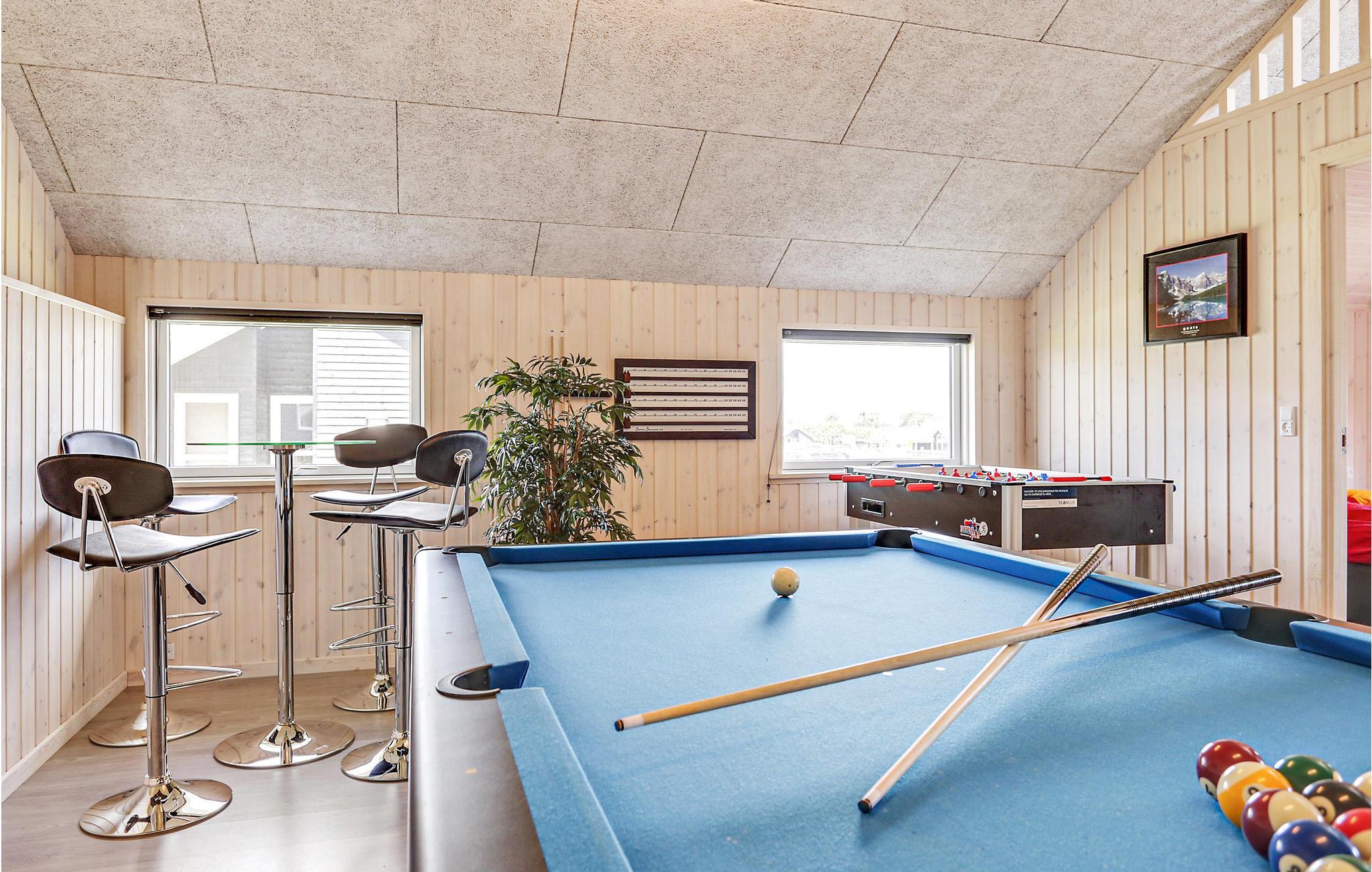 I gåafstand til den børnevenlige strand ligger dette dejlige feriehus i det hyggelige sommerhusområde ved Skåstrup Strand. Indretningen er moderne og praktisk; den rummelige stue ligger i forbindelse med det åbne og veludstyrede køkken. I husets aktivitetsrum, hvor der også er et ekstra køleskab, kan I afprøve jeres færdigheder i billard, pool, bordtennis, dart og bordfodbold. Her er også Playstation4 og diverse brætspil. I husets poolrum kan I boltre jer i både poolen, saunaen eller det massagegivende spabad. Husets fem soveværelser er fordelt i to soveafdelinger, som er placeret i hver sin ende af huset. Herudover er der en hems med fire sovepladser og tv. Sovepladserne på hemsen er mest velegnet til børn. Dertil kommer to badeværelser, hvor det ene er udstyret vaskemaskine og tørretumbler. Overalt i huset kan I benytte den hurtige, trådløse internetforbindelse. Udendørs har huset et dejligt aflukket terrasseområde, hvor I kan slappe af og nyde den friske luft. Ved huset findes også en trampolin. Aconto forbrug og slutrengøring betales kontant i huset sammen med de øvrige forbrugsomkostninger. Sengelinned, håndklæder, ekstra barneseng og –stol kan lejes mod betaling på det lokale kontor.