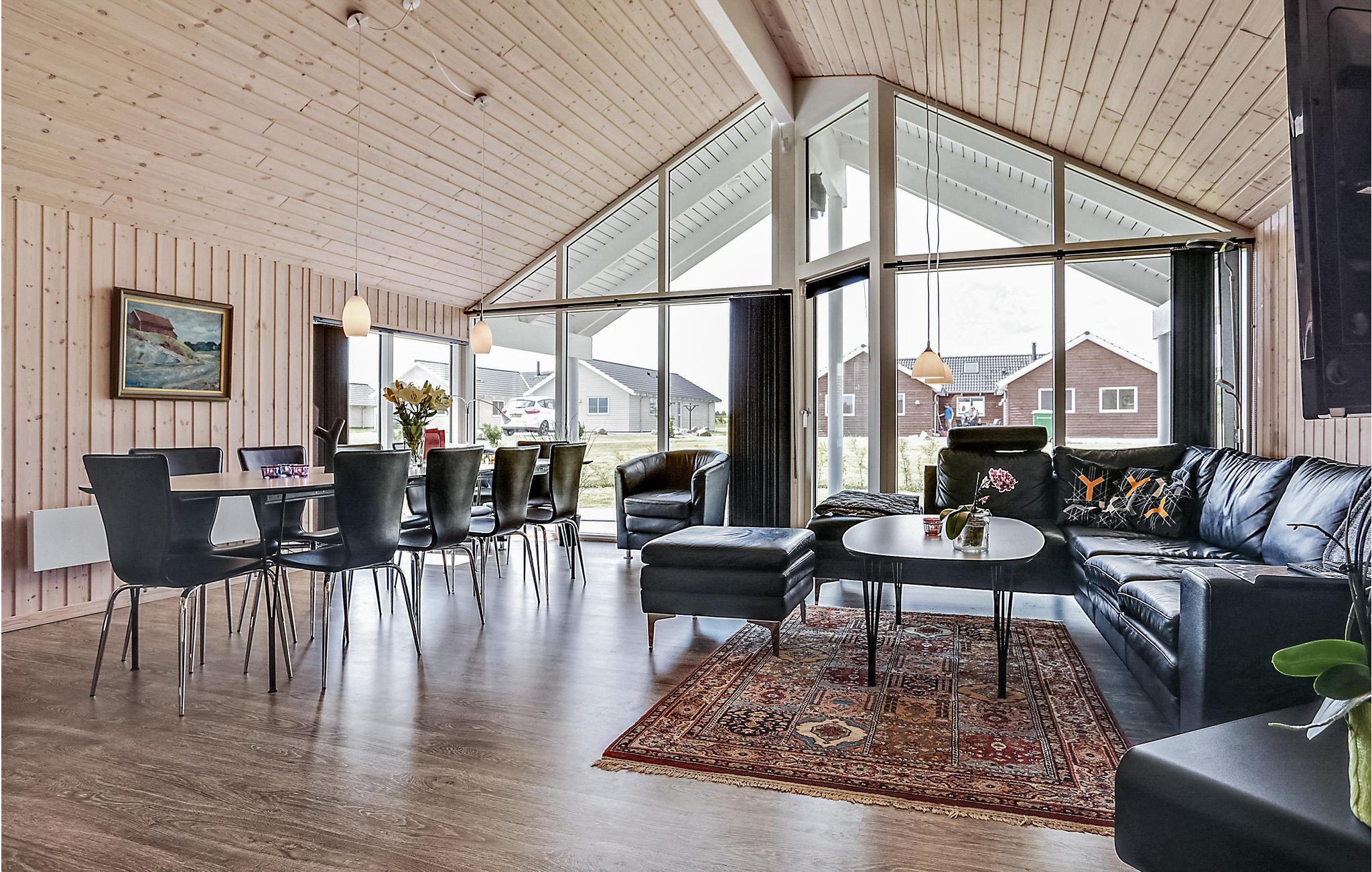 Dette spændende feriehus er beliggende i det hyggelige sommerhusområde ved Skåstrup Strand. Indendørs er der tænkt på detaljerne; den rummelige stue ligger i forbindelse med det åbne og veludstyrede køkken med bl.a. amerikaner køleskab med is og koldt vand. I forlængelse af stuen ligger husets aktivitetsrum. Her kan I afprøve jeres færdigheder i billard, pool, bordtennis og dart, når vejret ikke er til udendørs aktiviteter. Husets 4 soveværelser er fordelt i to soveafdelinger, som er placeret i hver sin ende af huset. Herudover er der en hems med 4 sovepladser. Dertil kommer to badeværelser, hvor det ene er udstyret med spa og sauna. Overalt i huset kan I benytte den hurtige trådløse internetforbindelse. Udendørs har husets nogle dejlige terrasseområder, hvor I kan slappe af og nyde den friske luft. Til huset hører egen beachvolley/badmintonbane. Huset ligger i gåafstand fra den familievenlig strand. Rengøring og forbrug betales kontant i feriehuset (Der modtages ikke betalingskort).
