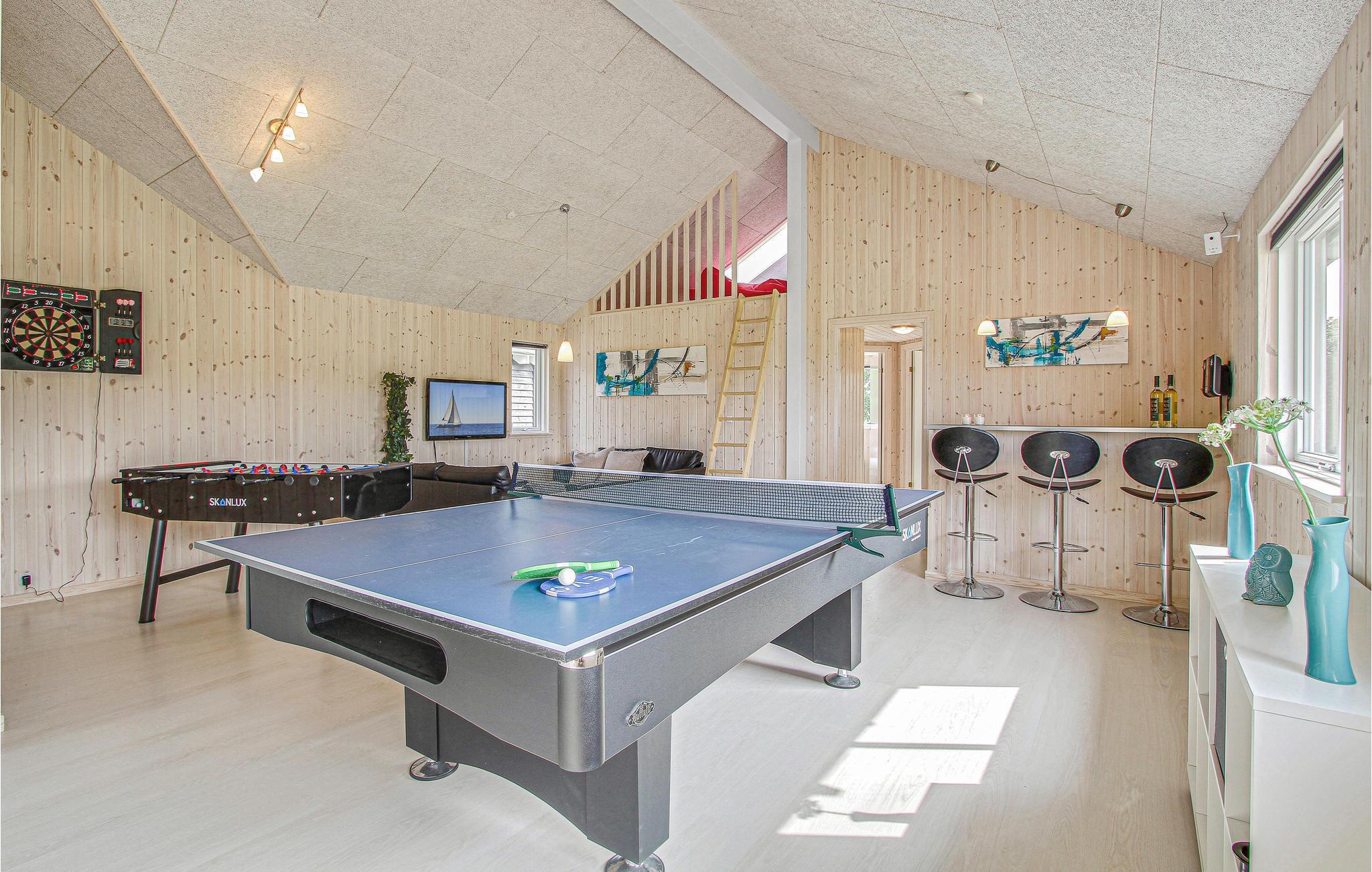 Et helt fantastisk feriehus med en god beliggenhed tæt på en dejlig badestrand på Nordfyn. Huset har seks gode soverum samt en hems på 10 m2. Hertil kommer et aktivitetsrum med bordfodbold, billard, bordtennis og dart. Aktivitetsrummet ligger lige ved siden af den store flotte stue med direkte adgang til køkkenet. I poolrummet kan I boltre jer både i poolen og i det 4 personers spabad. Her er også adgang til saunaen. Huset er udstyret med komfortable møbler og har iøvrigt alt det udstyr. Aconto forbrug og slutrengøring betales kontant i huset sammen med de øvrige forbrugsomkostninger. Sengelinned, håndklæder, barneseng og –stol kan lejes mod betaling på det lokale kontor.