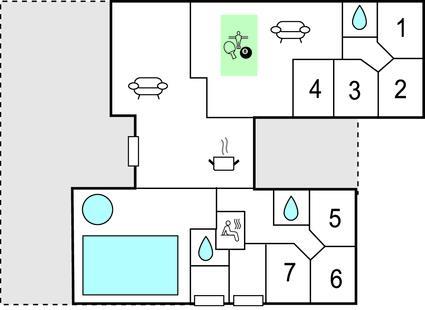 Et spændende og flot feriehus, hvor der er lagt vægt på såvel god indretning som smag for de små detaljer. Huset passer til hele familien, hvor børnene kan bruge energien i den store poolafdeling. Derudover findes et aktivitetsrum med bordtennis og billard samt en lille bar med køleskab, hvor de foretrukne drinks kan mikses. Den store hems vil helt sikkert være et hit hos børnene. Husets køkken er meget veludstyret og dimensioneret til husets størrelse med bl.a. 2 komfurer og 2 opvaskemaskiner samt god plads i køleskab og fryser. Huset ligger i et dejligt og naturskønt område, og den familievenlige sandstrand ligger indenfor gåafstand fra huset. Også perfekt til en vandretur i naturen. Aconto forbrug og slutrengøring betales kontant i huset sammen med de øvrige forbrugsomkostninger. Sengelinned, håndklæder, barneseng og –stol kan lejes mod betaling på det lokale kontor.