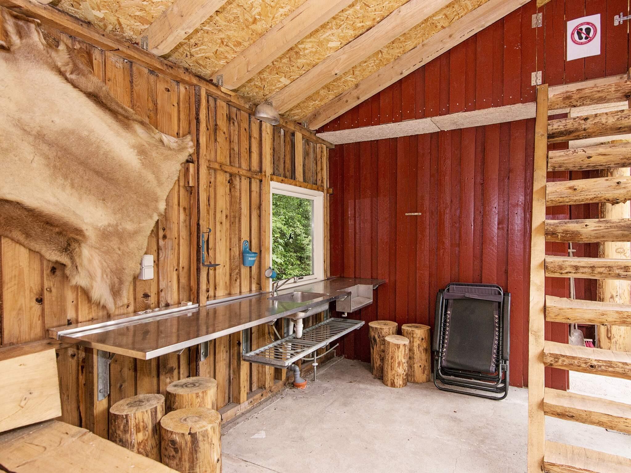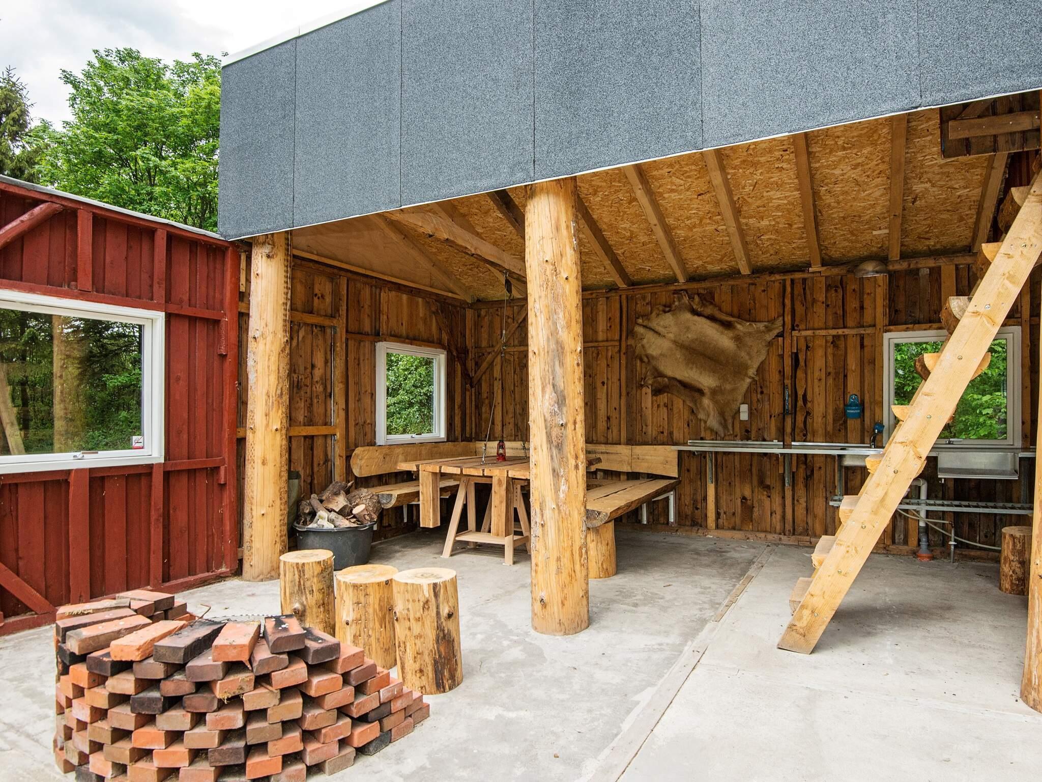 I haven findes et shelter med alt, hvad I har brug for bl.a. rindende sauna, vand, toilet og en stor bålplads. Her kan I grille pølser og hygge her ved ilden i aftentimerne. Der er mulighed for at 2 personer kan sove med liggeunderlag i det lille rum øverst i shelteren, hvor der også er læselampe og el-varme.