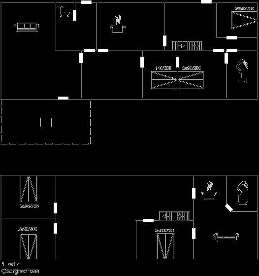 Der er 2 badeværelser med bruseniche og 3 toiletter, heraf 1 gæstetoilet. Der er gulvvarme på 1 badeværelse.. Badekar.