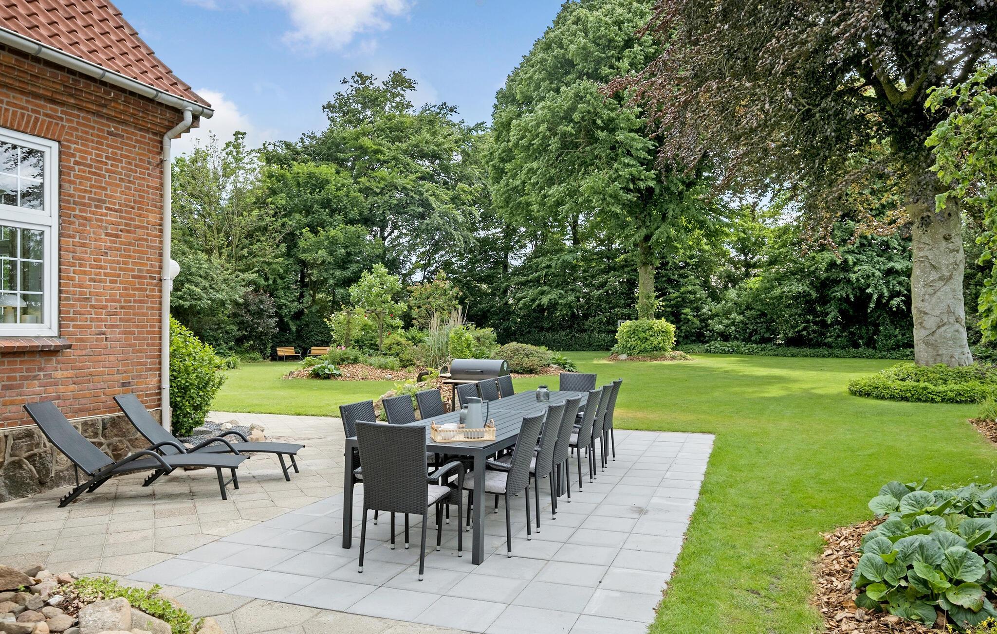 Udeområdet er tilsvarende dejligt. Her får I masser af plads at boltre jer på, en trampolin og mange sports- og legeredskaber, som børnene kan brænde energi af med i løbet af dagen. Alt imens kan de voksne nyde roen på terrassen, drikke en god kop kaffe og læse en god bog, inden der tændes op i grillen og tilberedes lækre bøffer under aftensolen.