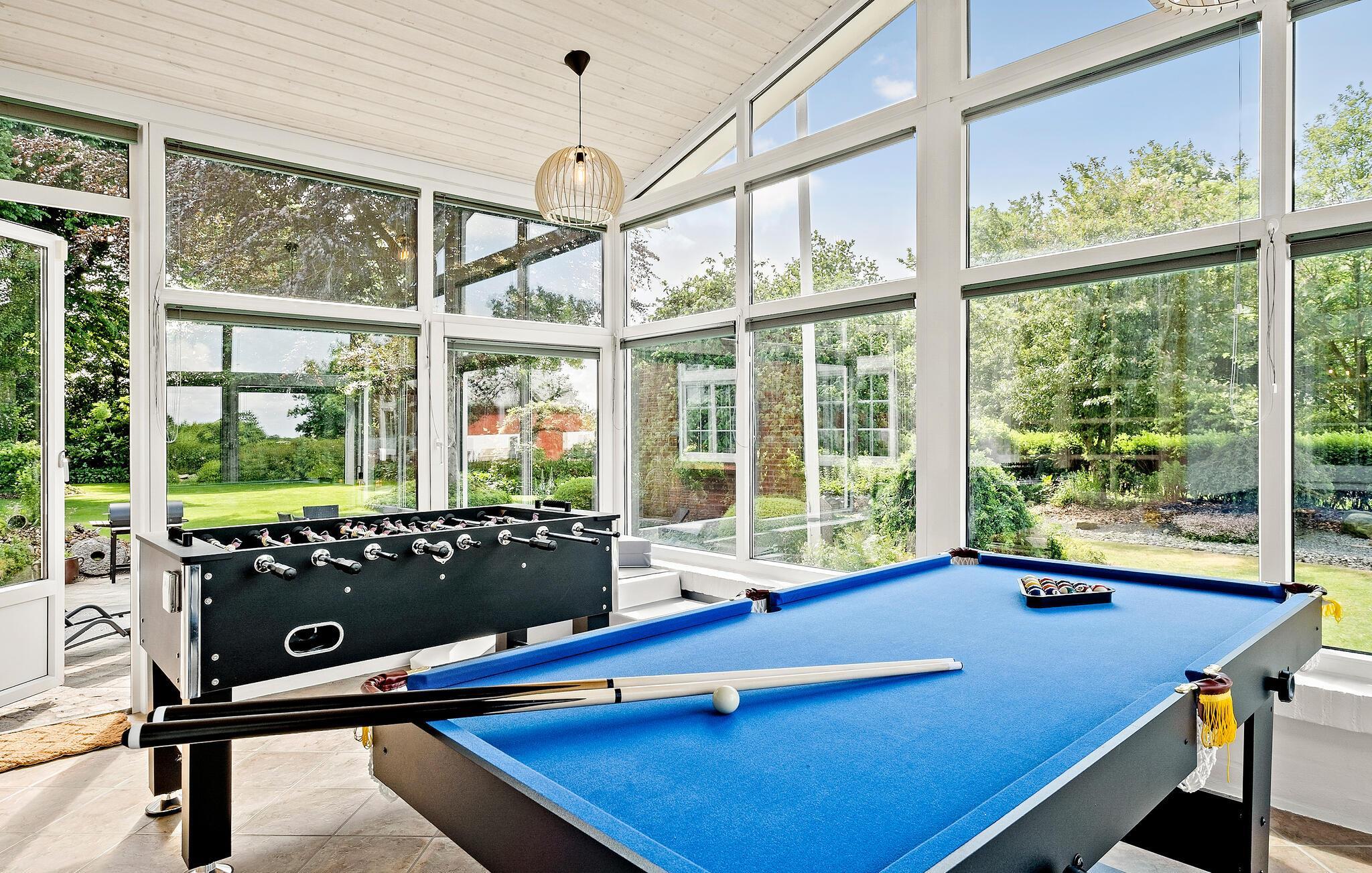 Rummeligt landsted nær Løgumkloster med wellness, aktivitetsrum og stor have til familiehygge.
