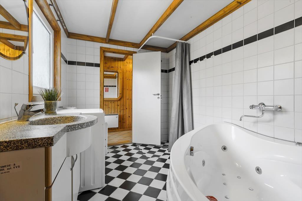 Den store, ugenert skovgrund omkring huset inviterer til leg, aktiviteter og afslapning i naturens fredfyldte omgivelser. Terrassen, der omgiver det meste af huset, byder på mange muligheder for at finde en solrig eller skyggefuld krog. På hovedterrassen, der vender mod vest, kan du nyde de varme stråler og den rolige stemning, mens du forbereder dagens afslutning med et lækkert måltid på grillen.