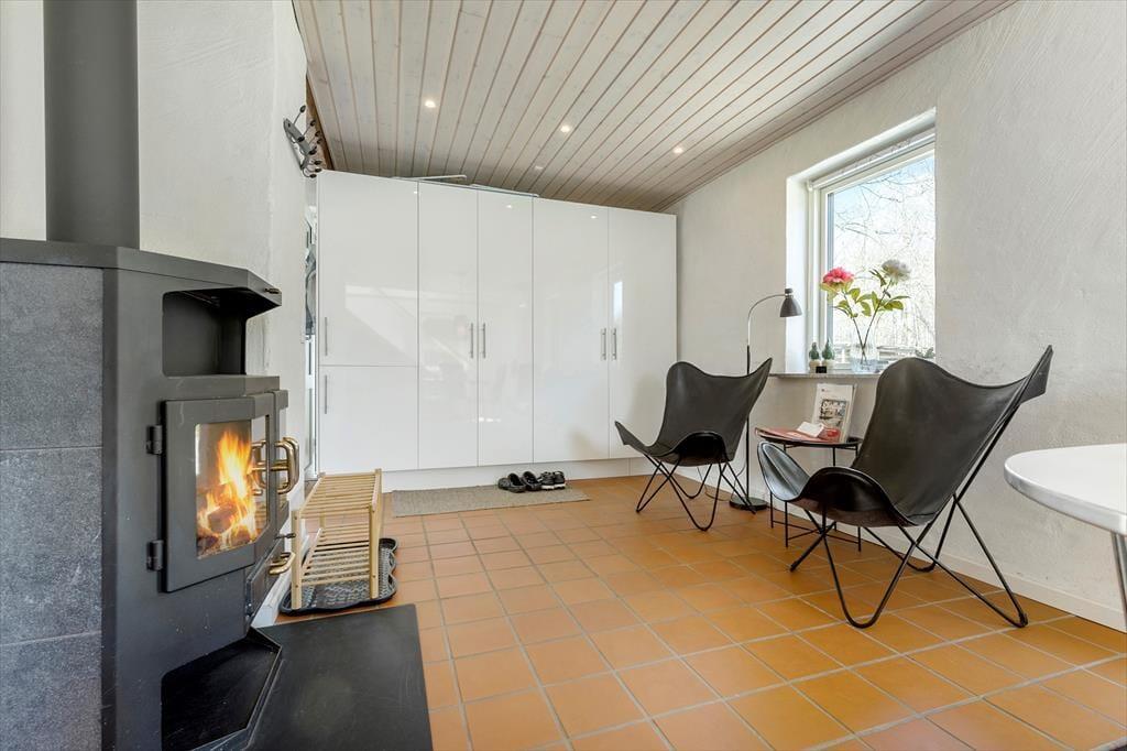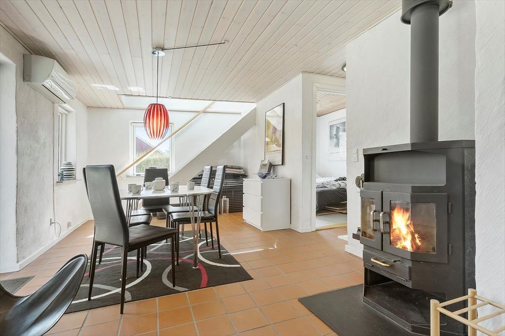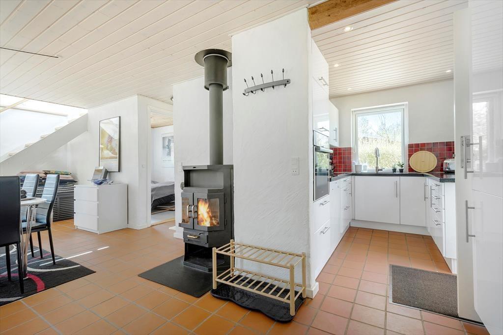 Dette hyggelige hus i 2-etager ligger tæt på stranden. I stueetagen har huset et dejligt køkken med opvaskemaskine. Her kan hele familien deltage i madlavningen, samtidig med at der snakkes og snittes på tværs af generationerne. Spisestuen har brændeovn, så du kan sidde helt stille og nyde flammernes bevægelse og lade dig drage af ildens farver. Badeværelset er flot renoveret med bruseniche. Huset har også en vaskemaskine og et soveværelse med dobbeltseng. Stueetagen har gulvvarme og brændeovn. Ovenpå finder du en tv/stue og et stort soveværelse med dobbeltseng. Der er også 2 sovepladser på en hyggelig hems, som også er velegnet til hulebygning og leg. Du kan se dine egne tv-programmer og streamingtjenester via husets Chromecast og din egen mobil/tablet.