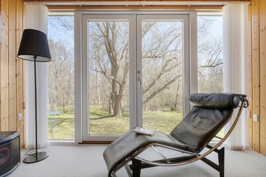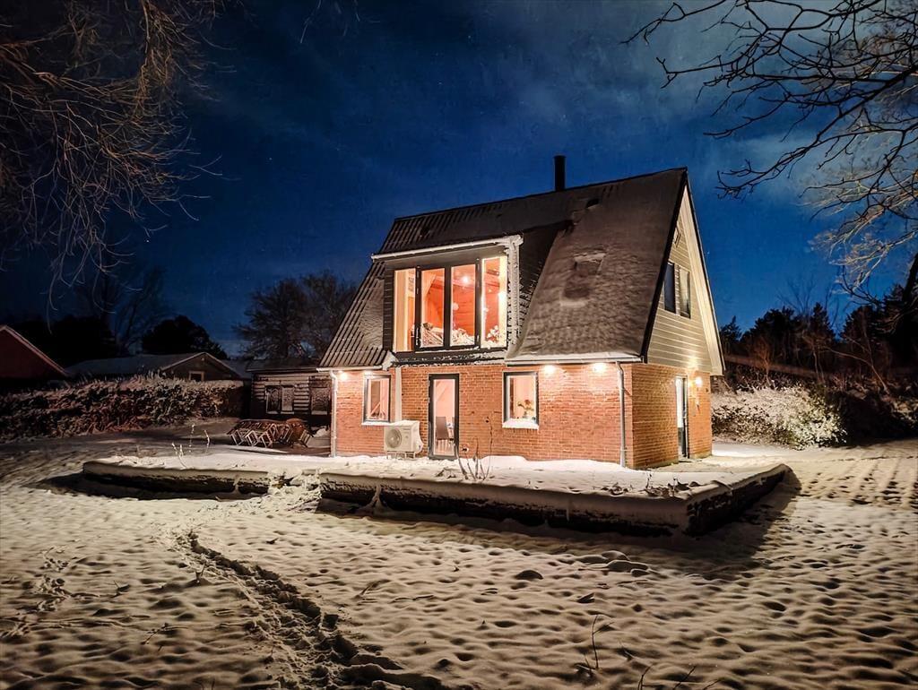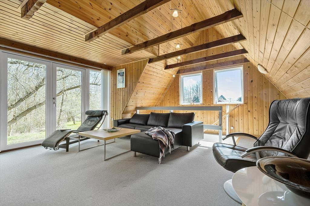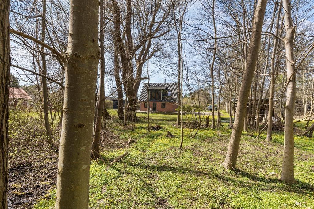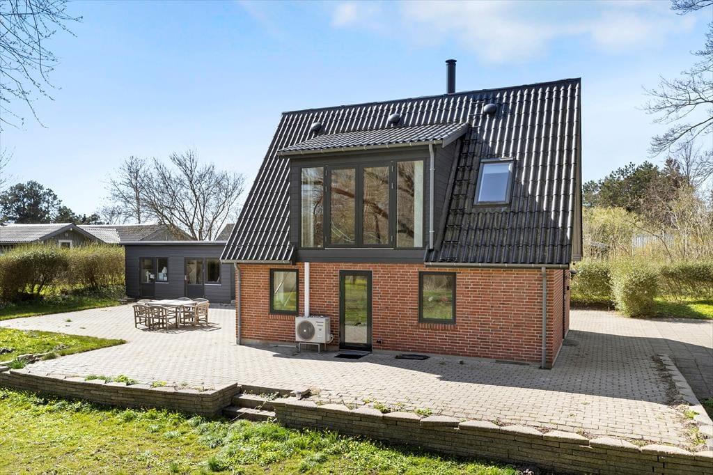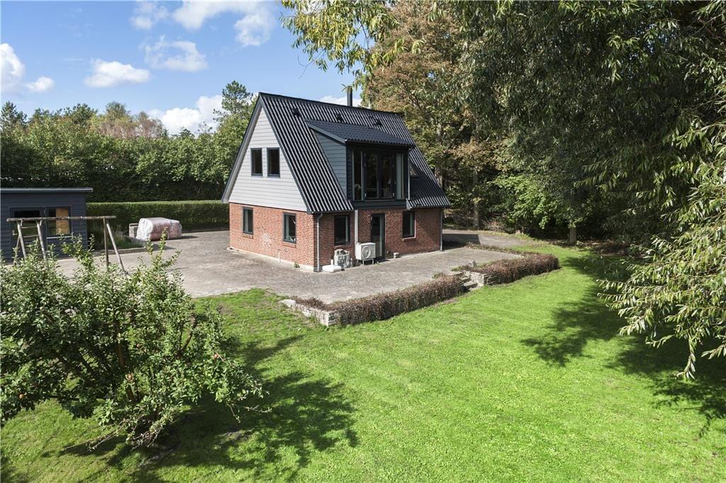 Udenfor er huset placeret på en stor, tilbagetrukket grund for enden af en lukket vej med græsplæne, perfekt til leg og boldspil. Her kan du sidde på terrassen og nyde solen, når den skinner. Se børnene lege i haven og om aftenen kan grillen tændes op og aftensmaden kan laves udenfor. Du kan også medbringe en god bog og fordybe dig i den, mens fuglene kvidrer rundt omkring dig. Haven bliver meget besøgt at dyr som ræve – dådyr og røde egern. Er du fugle interesseret kan vi oplyse at man her kan høre og se en Sangdrossel.