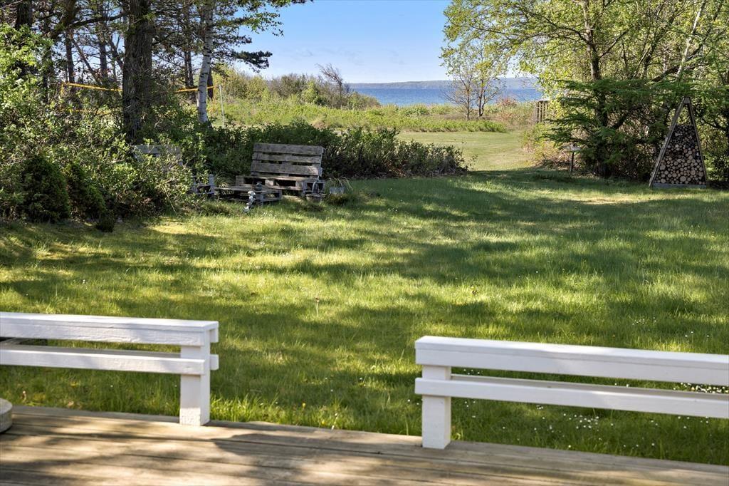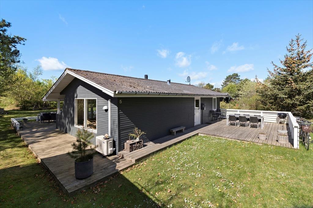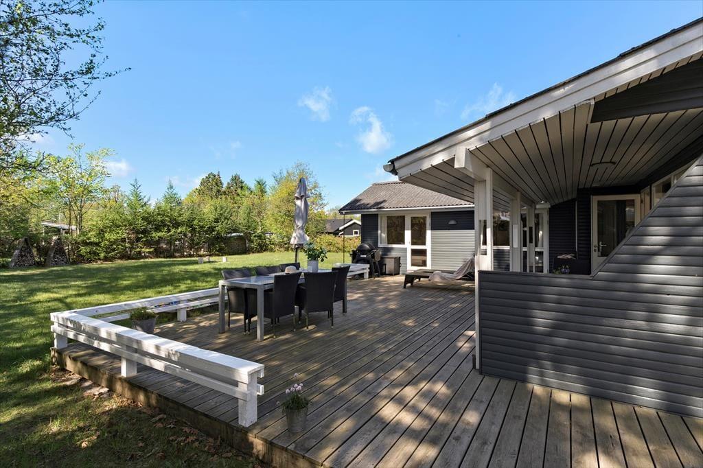 Ferieboligen ligger i naturskønne omgivelser, hvor du kan trække frisk luft og nyde solen på terrassen og se ud på vandet. Den velholdte have er oplagt til en hyggelig grillaften, mens børnene leger på græsplænen. Er du til morgenkaffe under åben himmel eller et glas vin i solnedgangen? Her får du alle muligheder for at nyde udendørslivet i fulde drag.