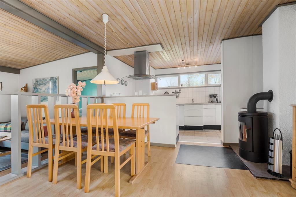 Træd ind i dette hyggelige feriehus på Skovvej 18, hvor der er plads til op til seks personer og jeres firbenede venner. Med tre soveværelser, et lyst badeværelse og et åbent køkken-alrum er der god plads til både samvær og afslapning. Stuen er indrettet med komfortable møbler og en brændeovn, der skaber en varm og indbydende atmosfære på kølige aftener. Her kan I nyde en god bog, spille spil eller bare slappe af efter en dag fuld af oplevelser.