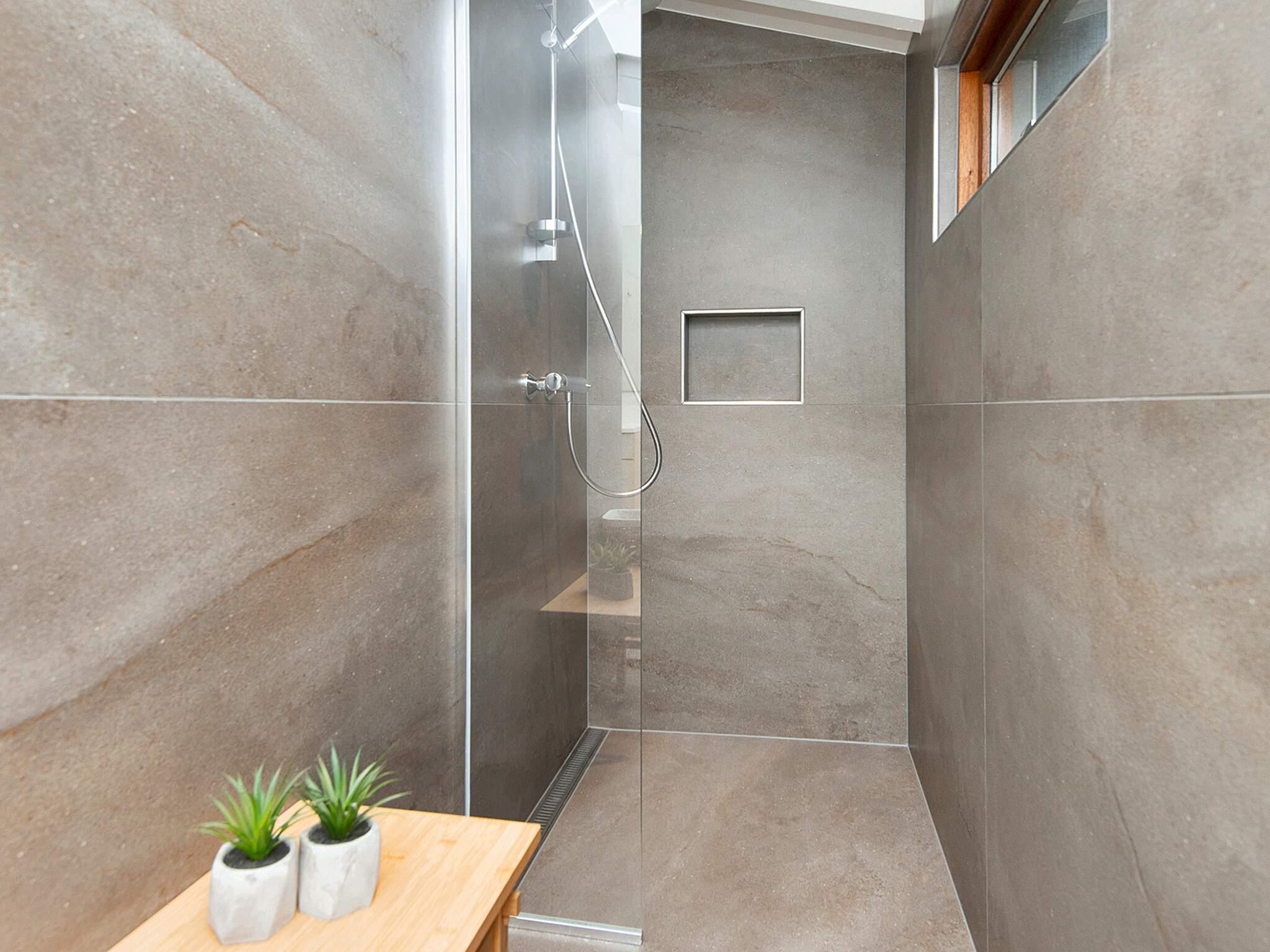 Bad/wc: Wc, håndvask, bruseniche, gulvvarme