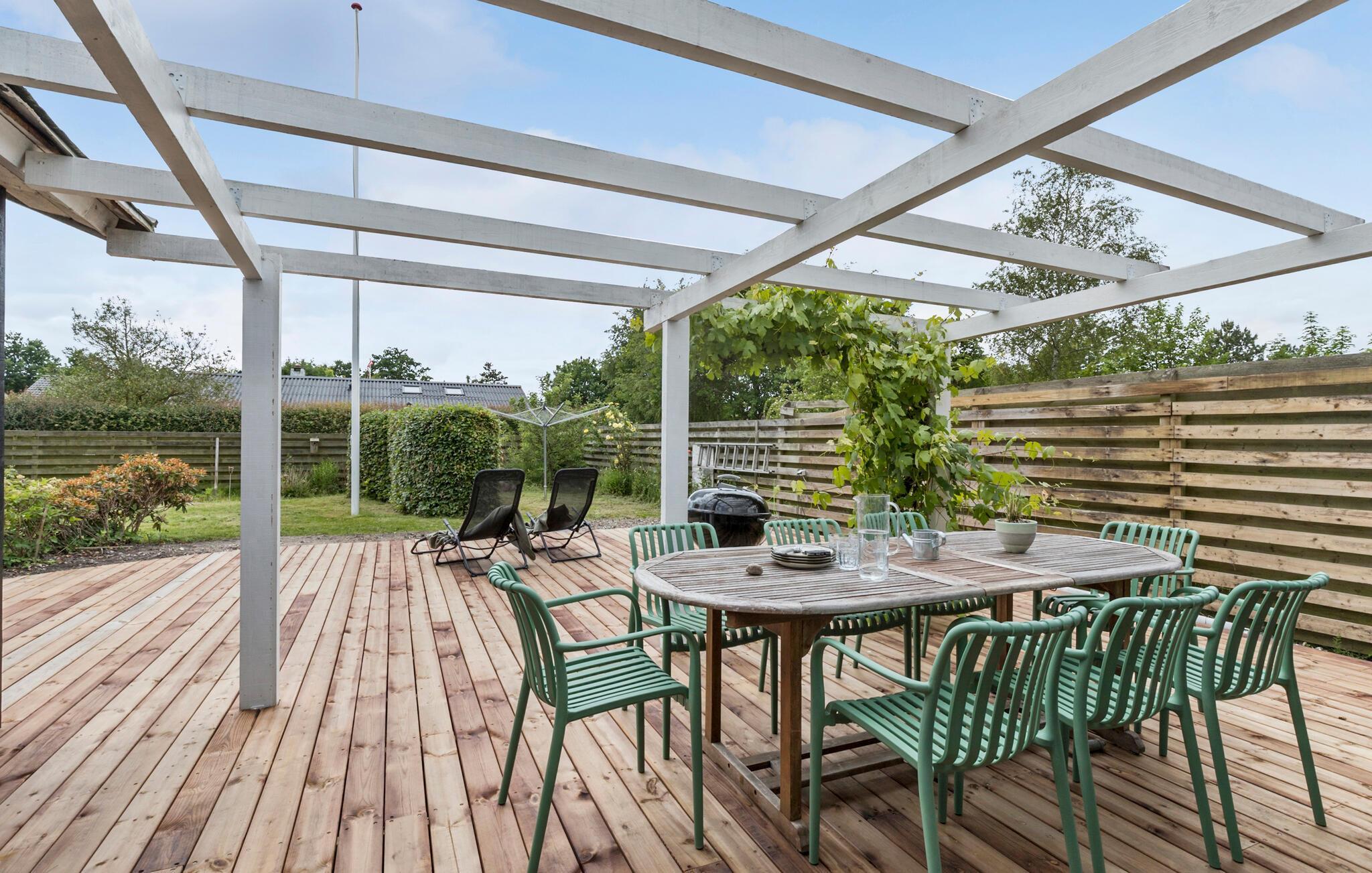 Den indbydende atmosfære fortsætter på terrassen og i haven. Nyd nogle hyggelige grillaftener sammen, og hyg jer i pergolaen. Lad børnene lege ubekymret i haven, mens de voksne slikker sol og planlægger de næste udflugter.