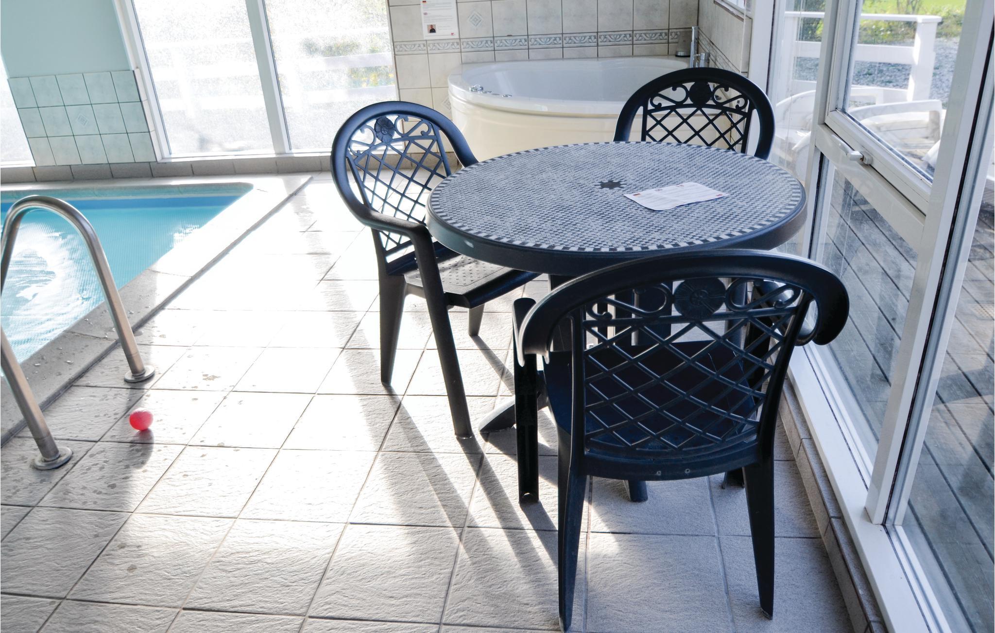 Ved Skødshoved byder dette feriehus jer velkommen et stykke oppe i det bølgede landskab med marker til flere sider. Det komfortable, originale feriehus byder både ude og inde på masser af plads og aktiviteter for hele familien. Tilbring mange timer med badesjov og wellness i poolafdelingen, nyd lækre måltider og gode samtaler rundt om spisebordet i det store opholdsrum og hyg jer i de kølige årstider foran brændeovnen.