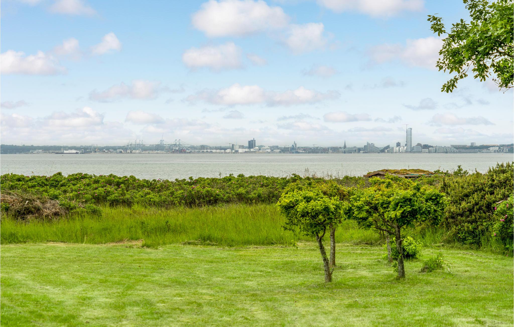Nyd en skøn ferie i første række til vandet ved Skødshoved Strand med panoramaudsigt og privat strandadgang.