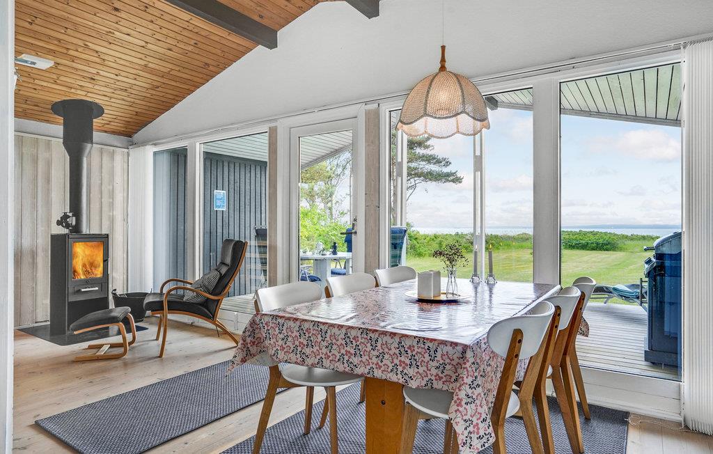 Hold ferie i 1. række til vandet, på denne skønne naturgrund, der strækker sig ned i klitterne og til strand. Nyd den skønne panoramaudsigt fra huset og terrassen. Her oplever man virkelig tætheden til strand og hav. Stranden er børnevenlig. Huset er pænt møbleret, holdt i lyse farver og er velegnet til såvel en familie som til par, som ønsker sig et roligt sted tæt ved stranden. Vindsurfing er meget populært ved den vestvendte kyst. Der er iøvrigt også gratis privat fortøjringsplads til båd foran huset. Der er hurtig fiberbredbånd (50/50 mbit).