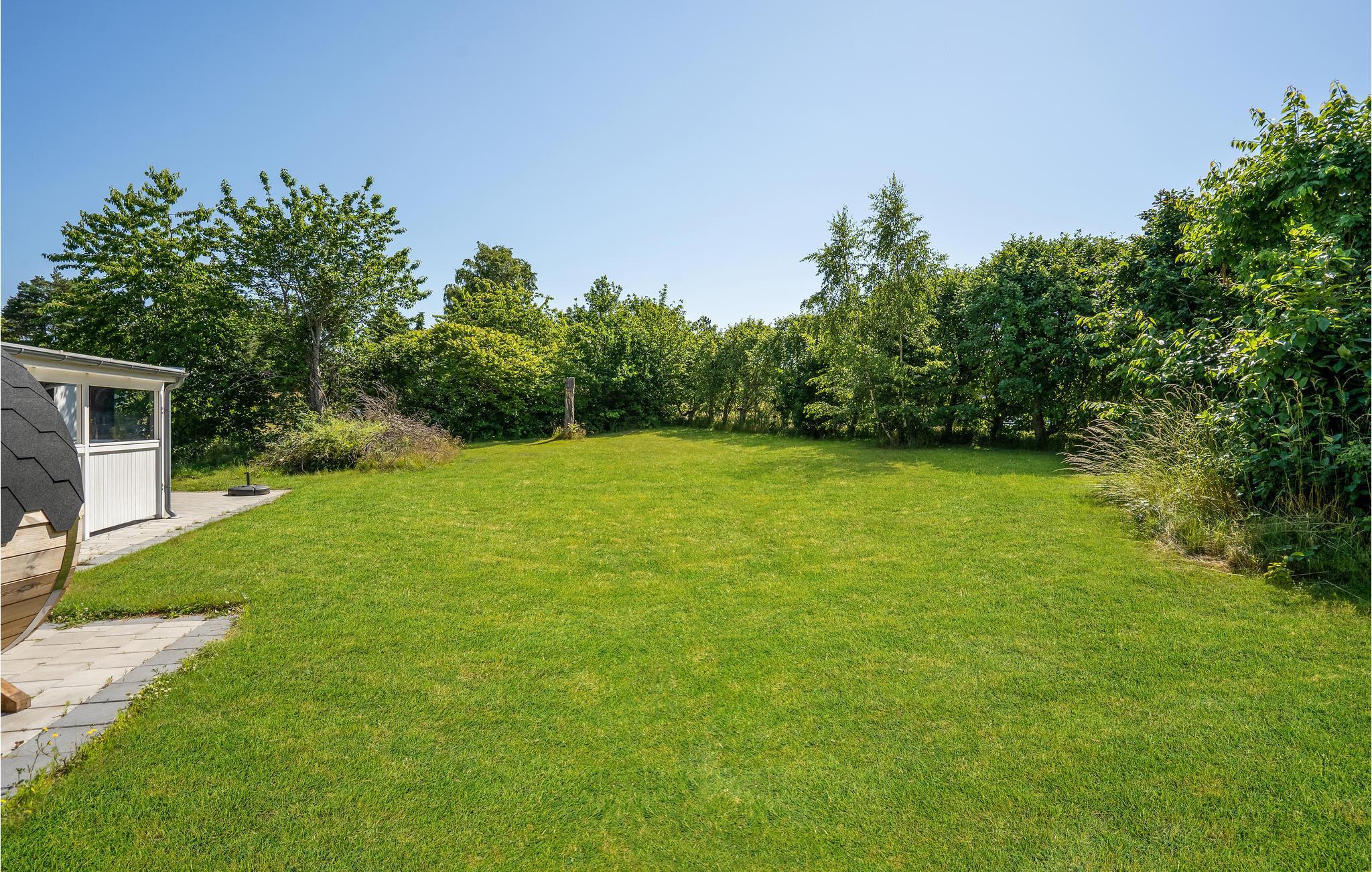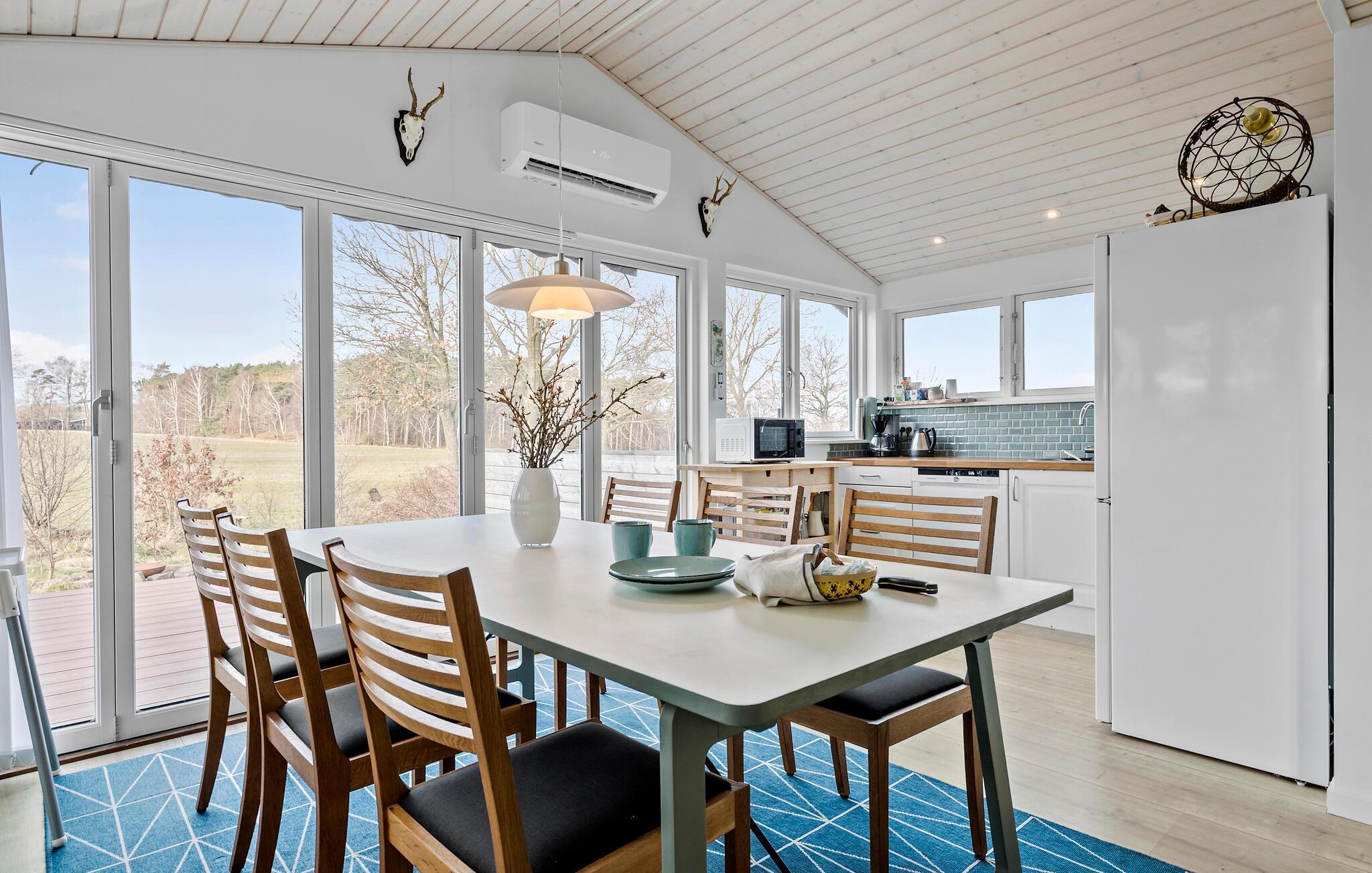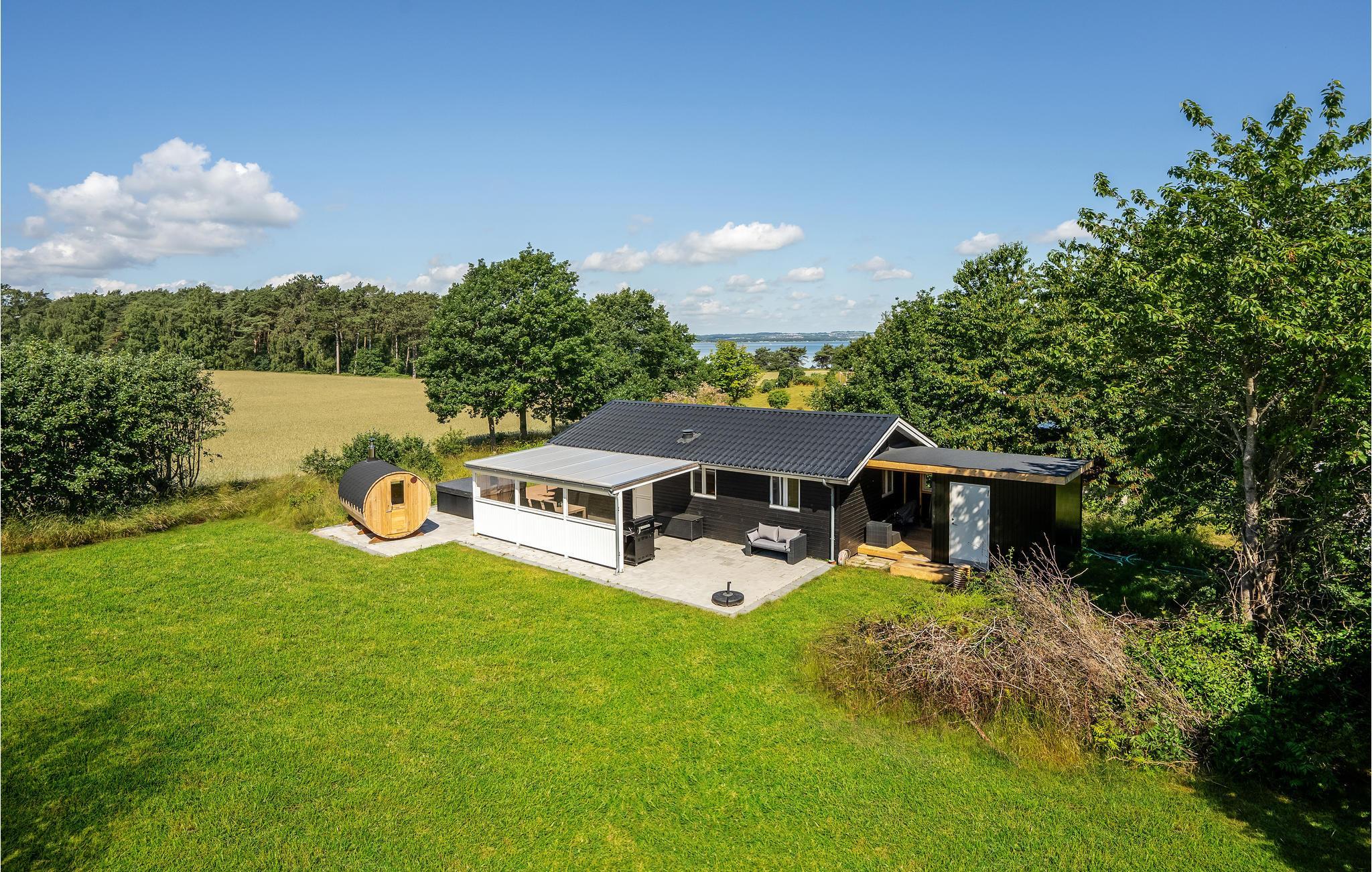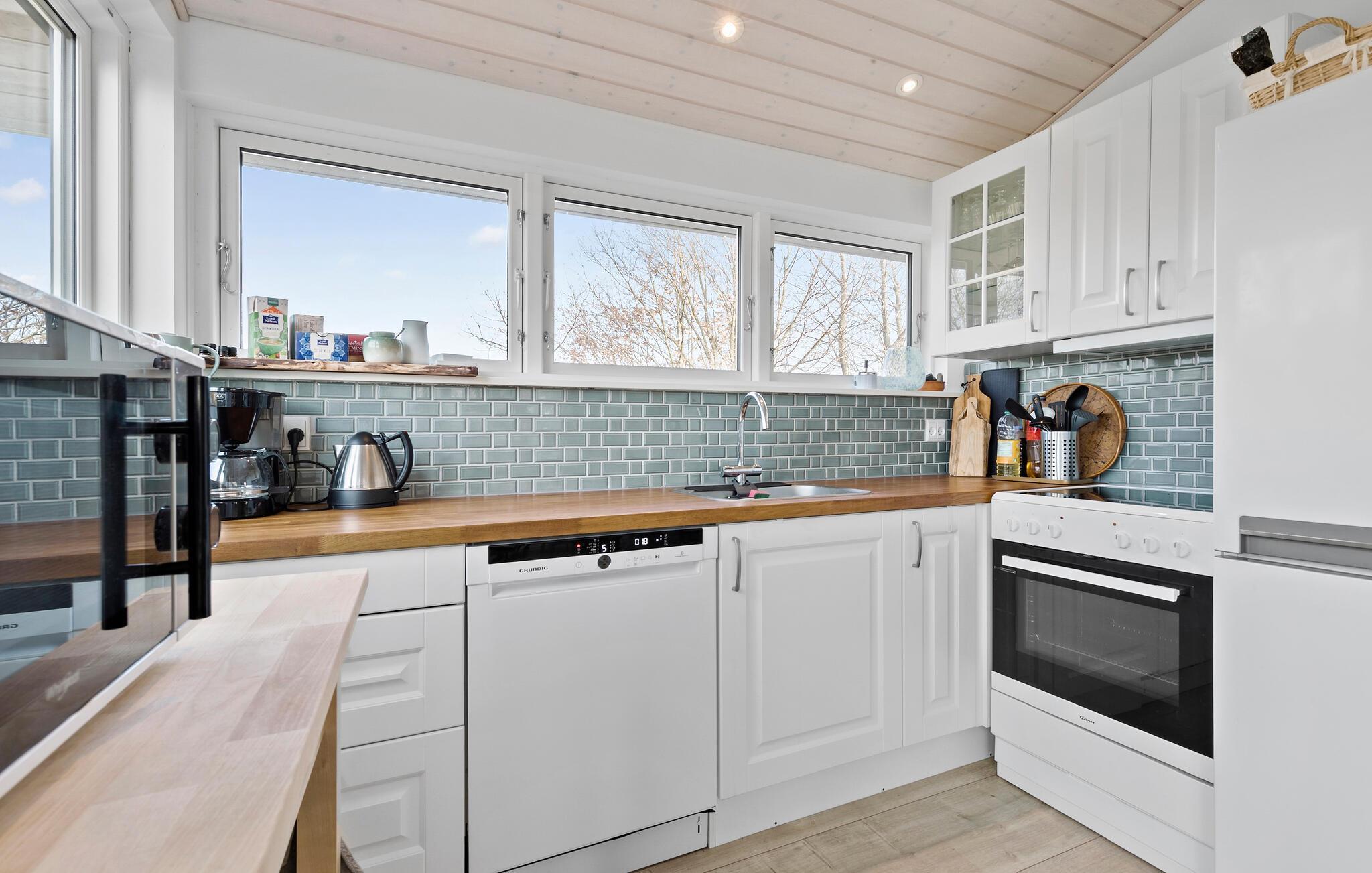 Glæd jer til dette helt særlige sommerhus, som ligger i smukke, grønne omgivelser. En hyggelig sti fører jer direkte ned til en dejlig stenstrand, hvor I kan nyde solnedgangen og måske finde en flintøkse, hvis I er heldige. Grunden har en flot udsigt til åbne marker, som I kan nyde fra terrassen, hvor der er sol hele dagen. Børnene har også god plads til at løbe og lege i det fri. Indendørs kan I se frem til en åben, lys bolig med gode fællesarealer.