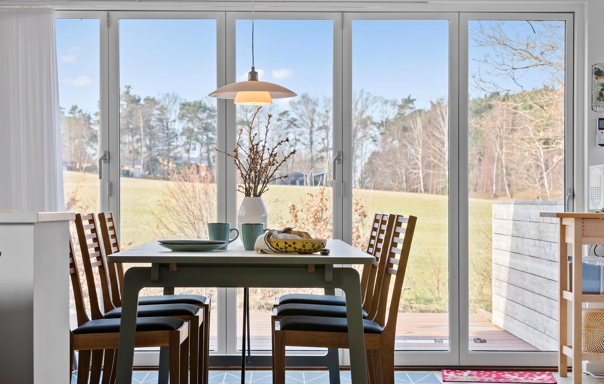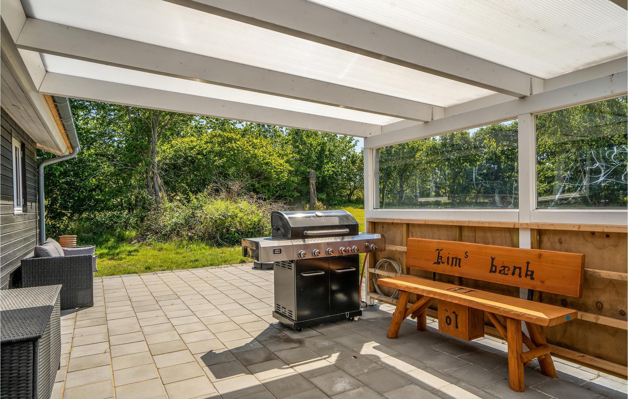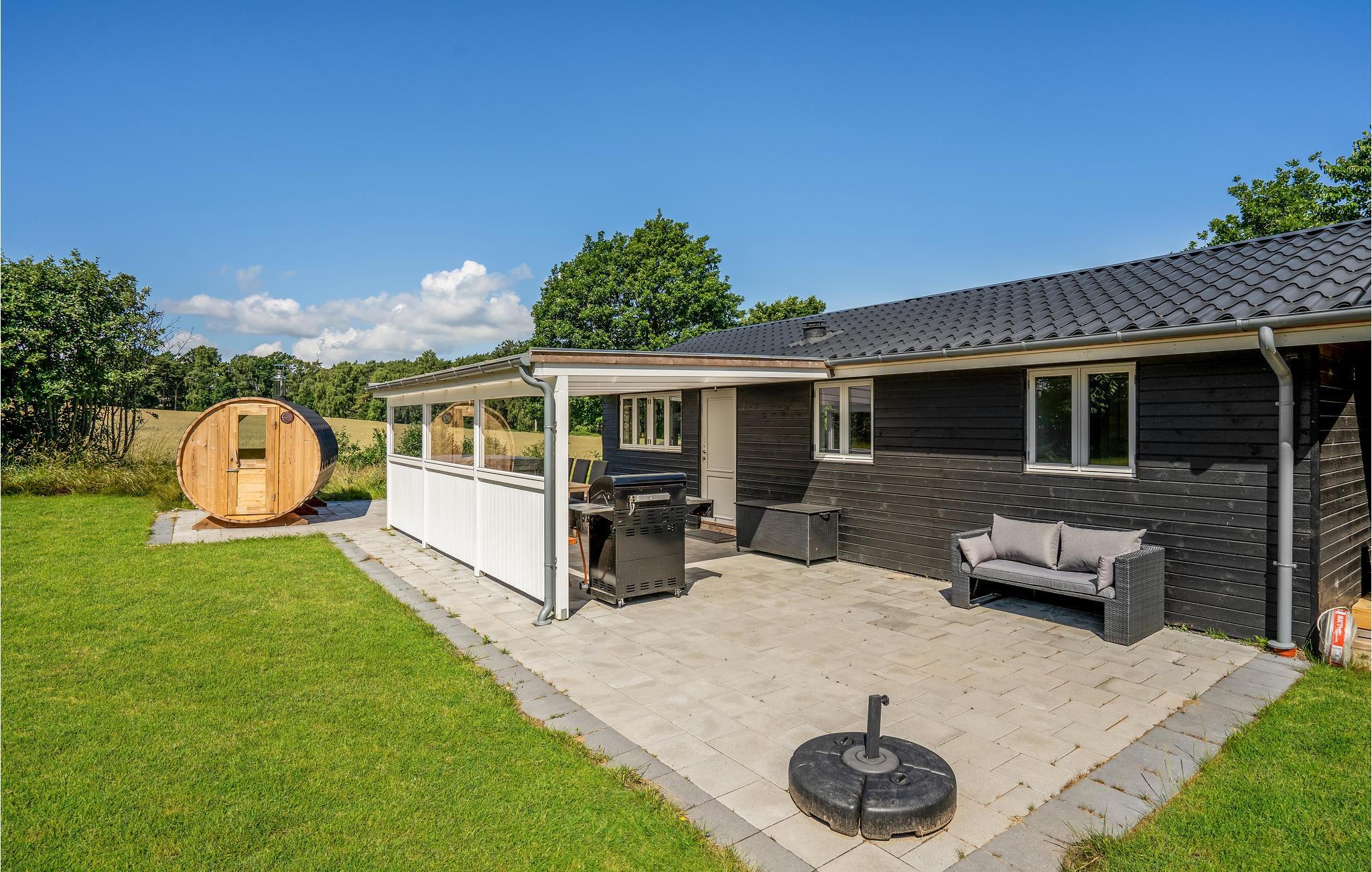 Glæd jer til dette helt særlige sommerhus, som ligger i smukke, grønne omgivelser. En hyggelig sti fører jer direkte ned til en dejlig stenstrand, hvor I kan nyde solnedgangen og måske finde en flintøkse, hvis I er heldige. Grunden har en flot udsigt til åbne marker, som I kan nyde fra terrassen, hvor der er sol hele dagen. Børnene har også god plads til at løbe og lege i det fri. Indendørs kan I se frem til en åben, lys bolig med gode fællesarealer.