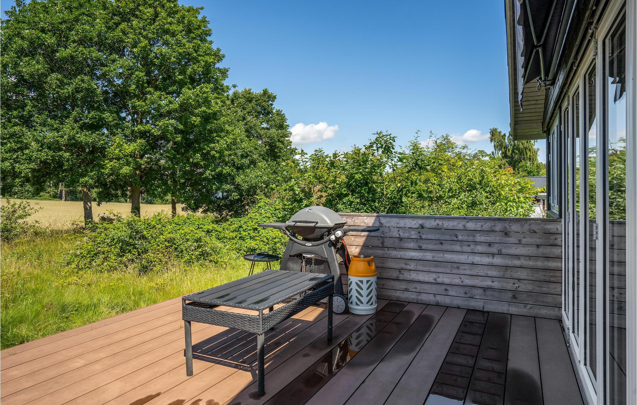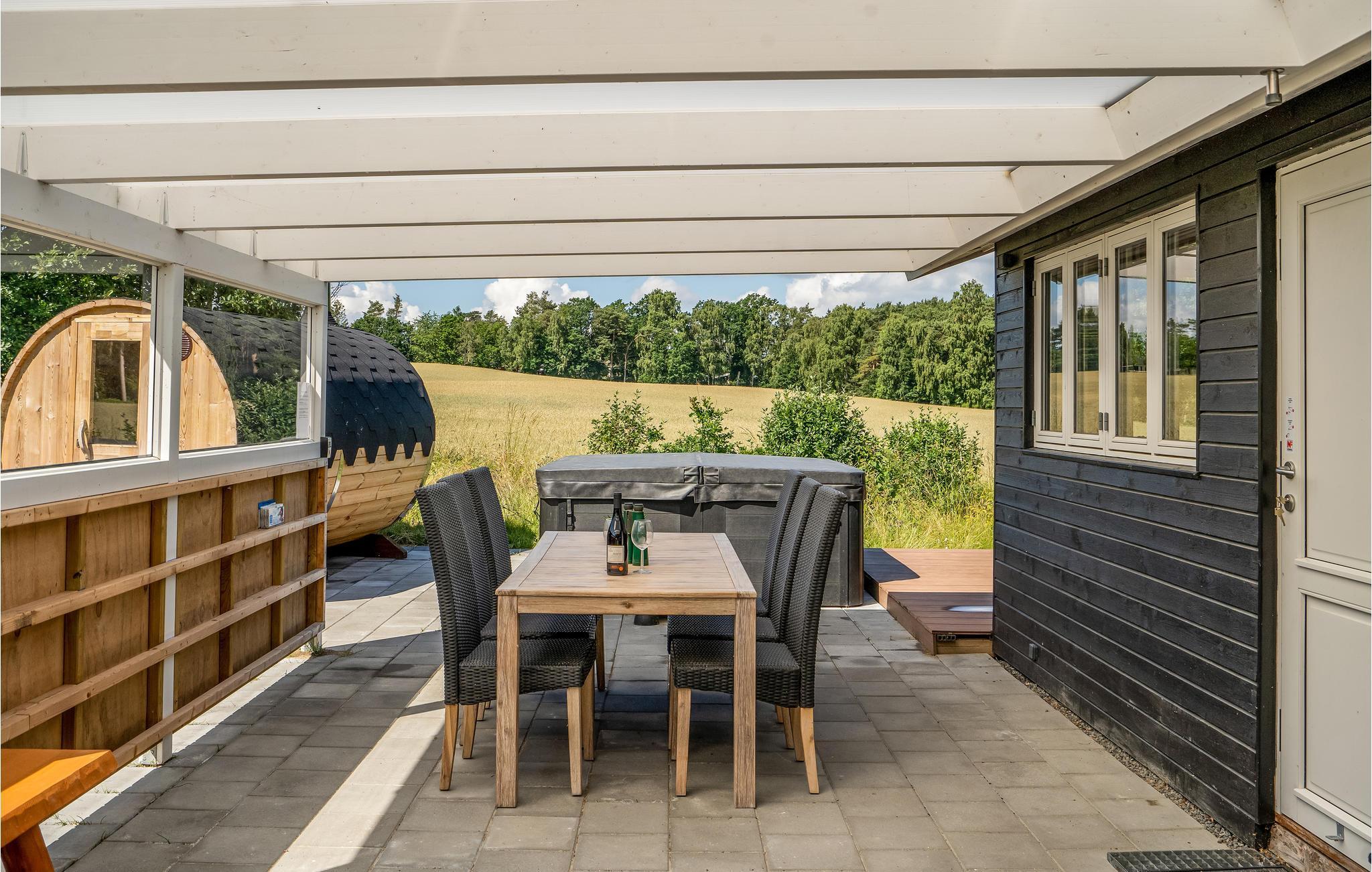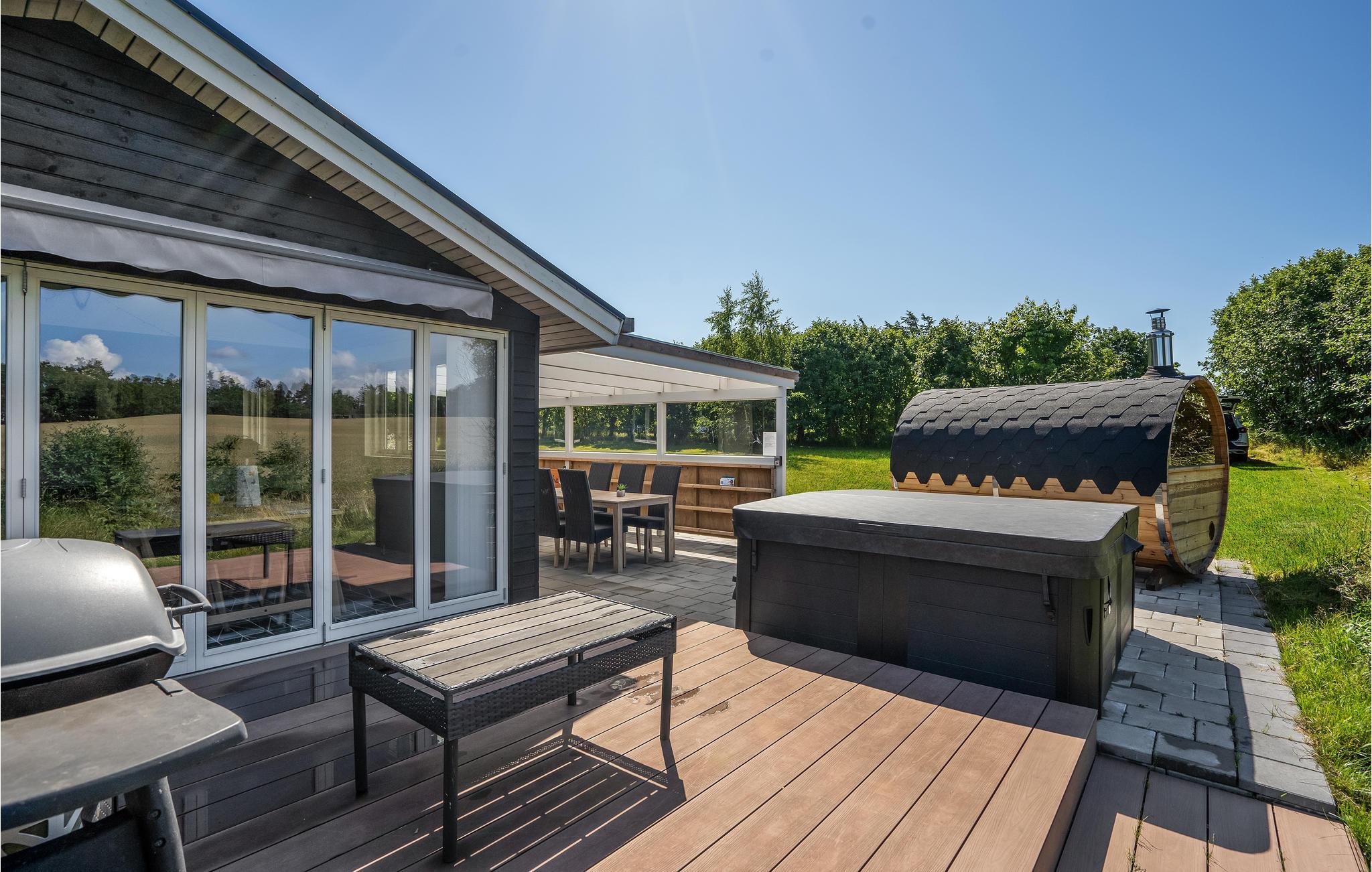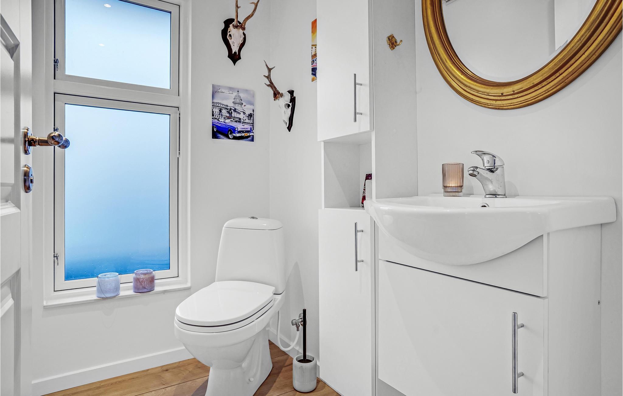 Glæd jer til dette helt særlige sommerhus, som ligger i smukke, grønne omgivelser. En hyggelig sti fører jer direkte ned til en dejlig stenstrand, hvor I kan nyde solnedgangen og måske finde en flintøkse, hvis I er heldige. Grunden har en flot udsigt til åbne marker, som I kan nyde fra terrassen, hvor der er sol hele dagen. Børnene har også god plads til at løbe og lege i det fri. Indendørs kan I se frem til en åben, lys bolig med gode fællesarealer.