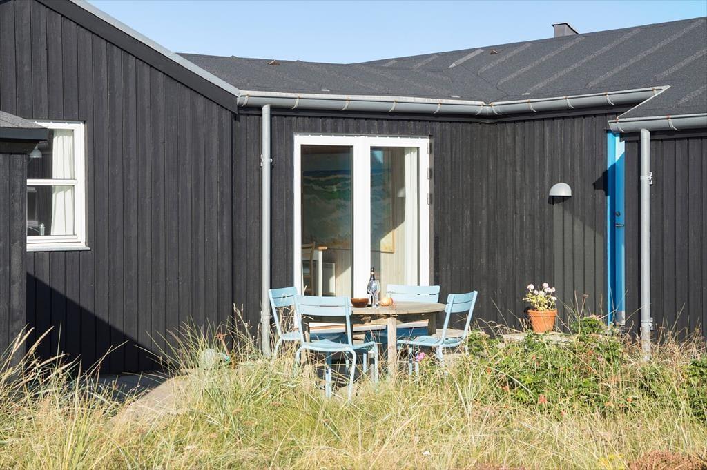 Sommerhuset er omgivet af en uspoleret naturgrund, hvor træer og lyng skaber en privat oase. Her kan du nyde livet under åben himmel, uanset om du foretrækker at sidde på terrassen med en kop kaffe eller strække dig i en liggestol med en god bog. Den rummelige terrasse er ideel til lange, hyggelige middage med familien, og når mørket falder på, kan du nyde stjernehimlen i den stille natur. Den korte afstand til Vesterhavet gør det oplagt at starte dagen med en morgendukkert eller slutte den med en gåtur langs strandens bølger.