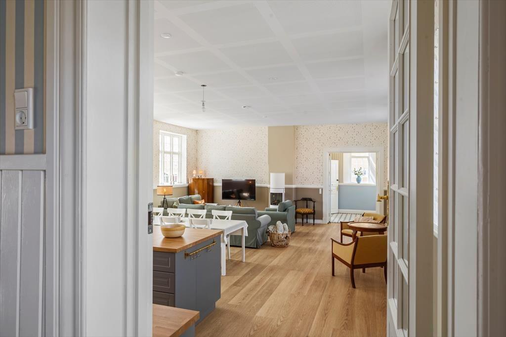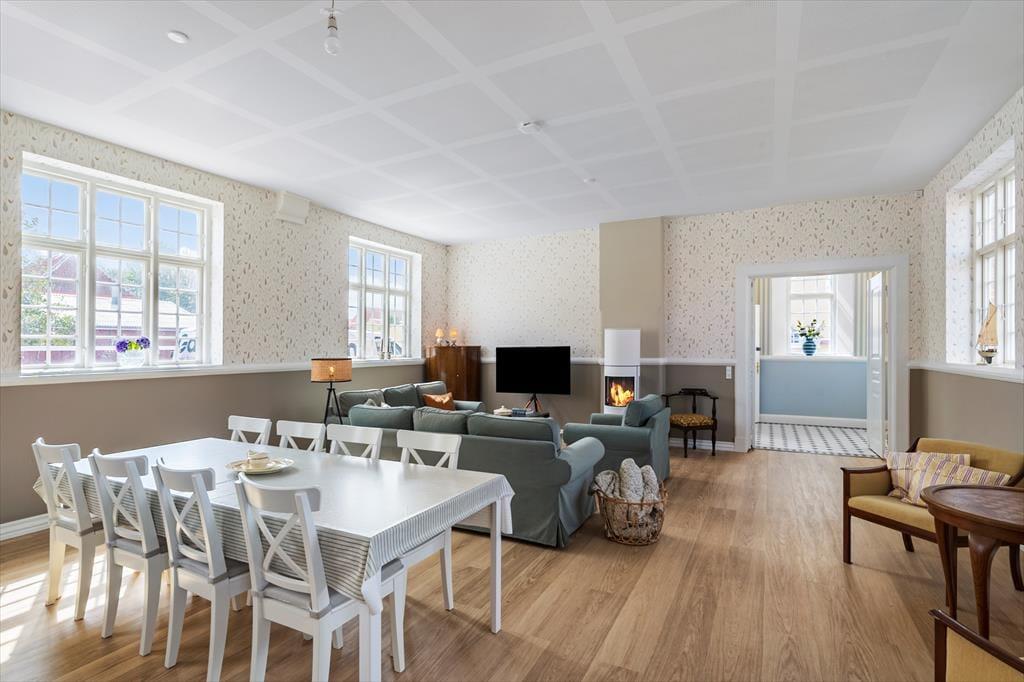 Byhuset byder på en indretning, hvor man straks fornemmer både sjæl og varme. Her er badehotel-stemningen tænkt ind i de lyse og imødekommende rammer, så det føles som at træde ind i en ferie, der sætter ro og velvære i centrum. Er I to familier eller måske et vennepar på tur, giver boligen de ideelle forhold: hver afdeling rummer sit eget soveværelse og badeværelse, så I både kan nyde hyggelige stunder sammen og have privatliv, når der er brug for det. Husets opholdsrum danner en naturlig samlingsplads, hvor der er plads til lange middage, spil og gode snakke, mens stemningen gør det let at lade skuldrene falde helt ned.