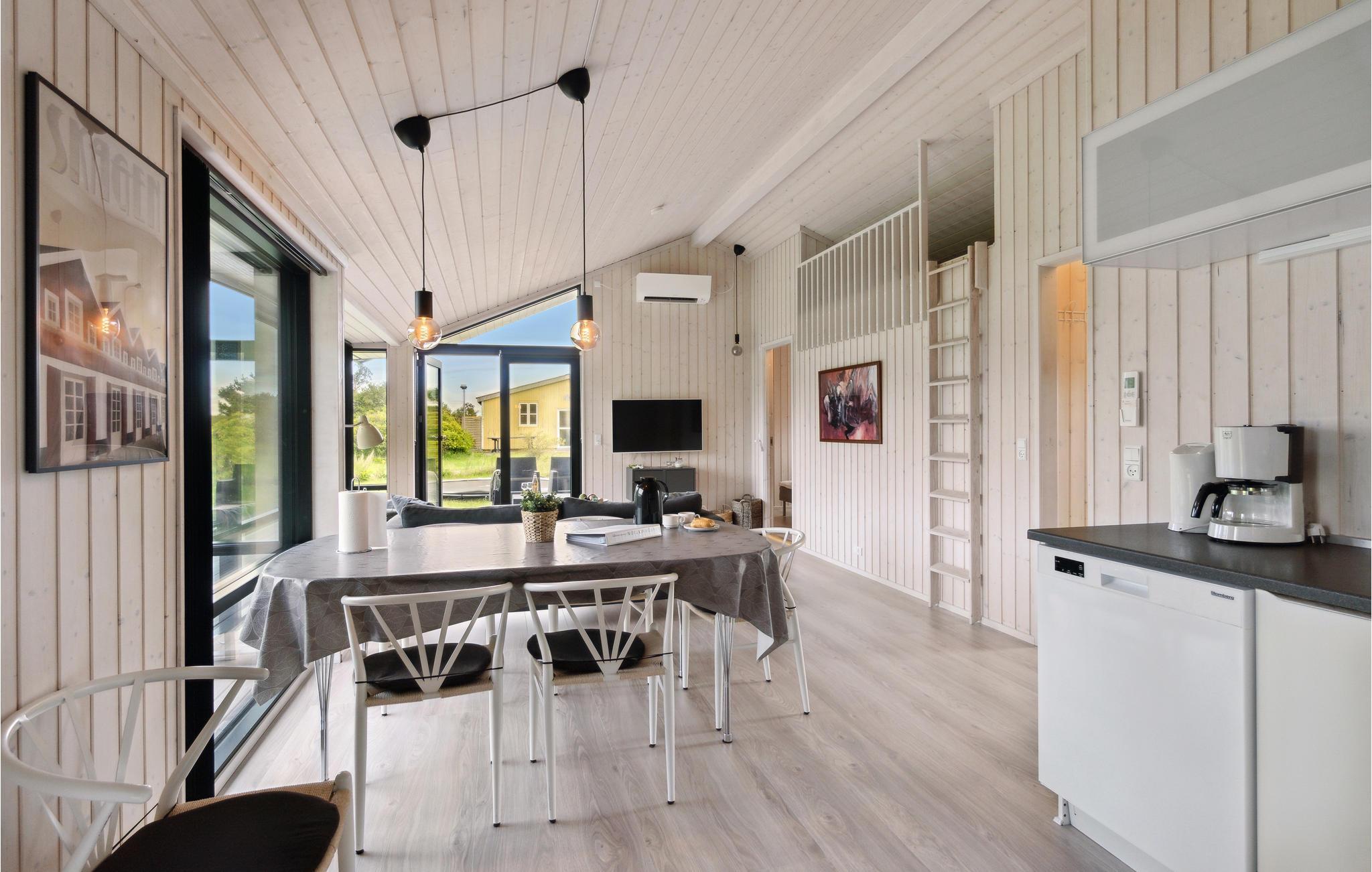 Med en meget rolig beliggenhed i det nordlige Skagen lover dette feriehus fredfyldte dage. Herfra er der ikke langt til den fantastiske natur og det pulserende liv i Skagen centrum. De lyse træpaneler og den moderne indretning giver værelserne charme og skaber de ideelle rammer for en dejlig ferie, hvor I kan kombinere strandhygge, naturoplevelser og spændende udflugter på bedste vis. Et særligt højdepunkt er panoramavinduerne, hvorfra I har en vidunderlig udsigt over naturen, mens I spiser eller slapper af i sofaen. Nyd solen i fulde drag på terrassen og servér middagen under åben himmel. Jeres børn vil hygge sig i mange timer på trampolinen.