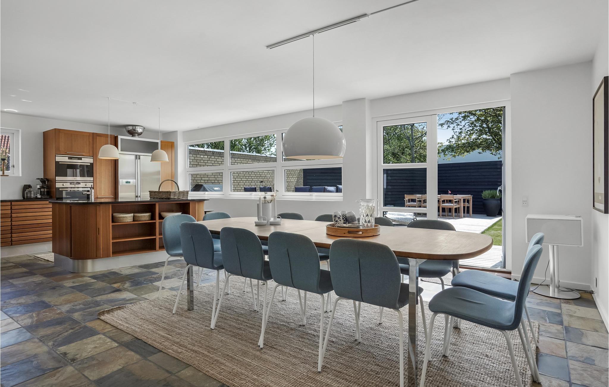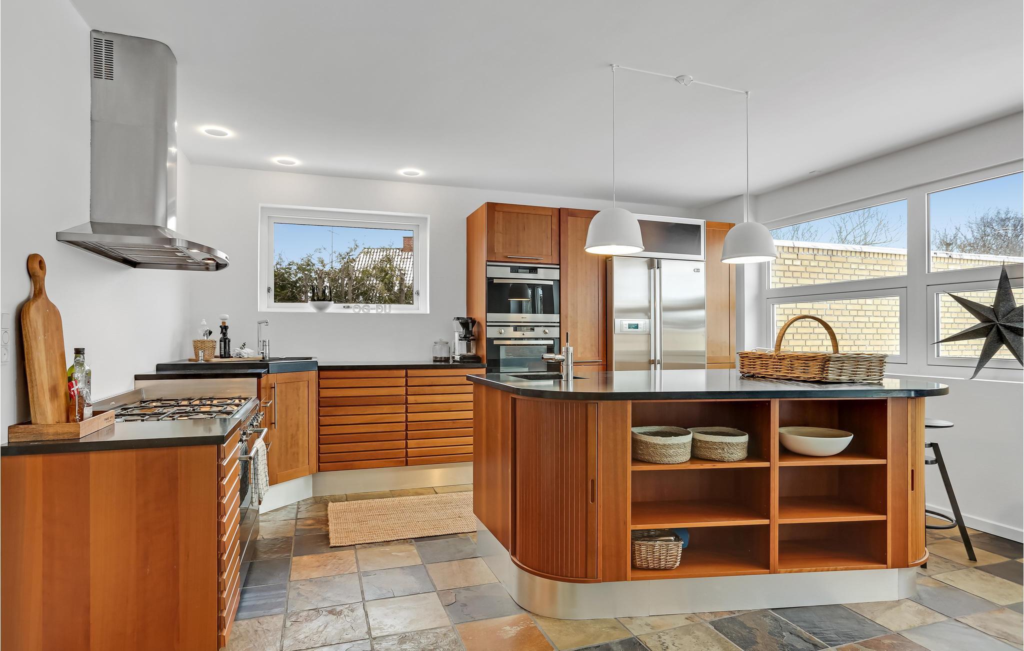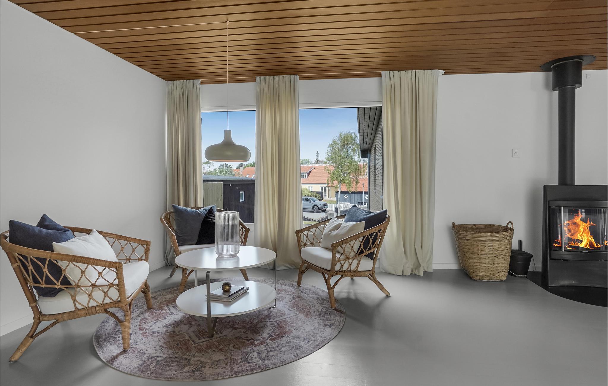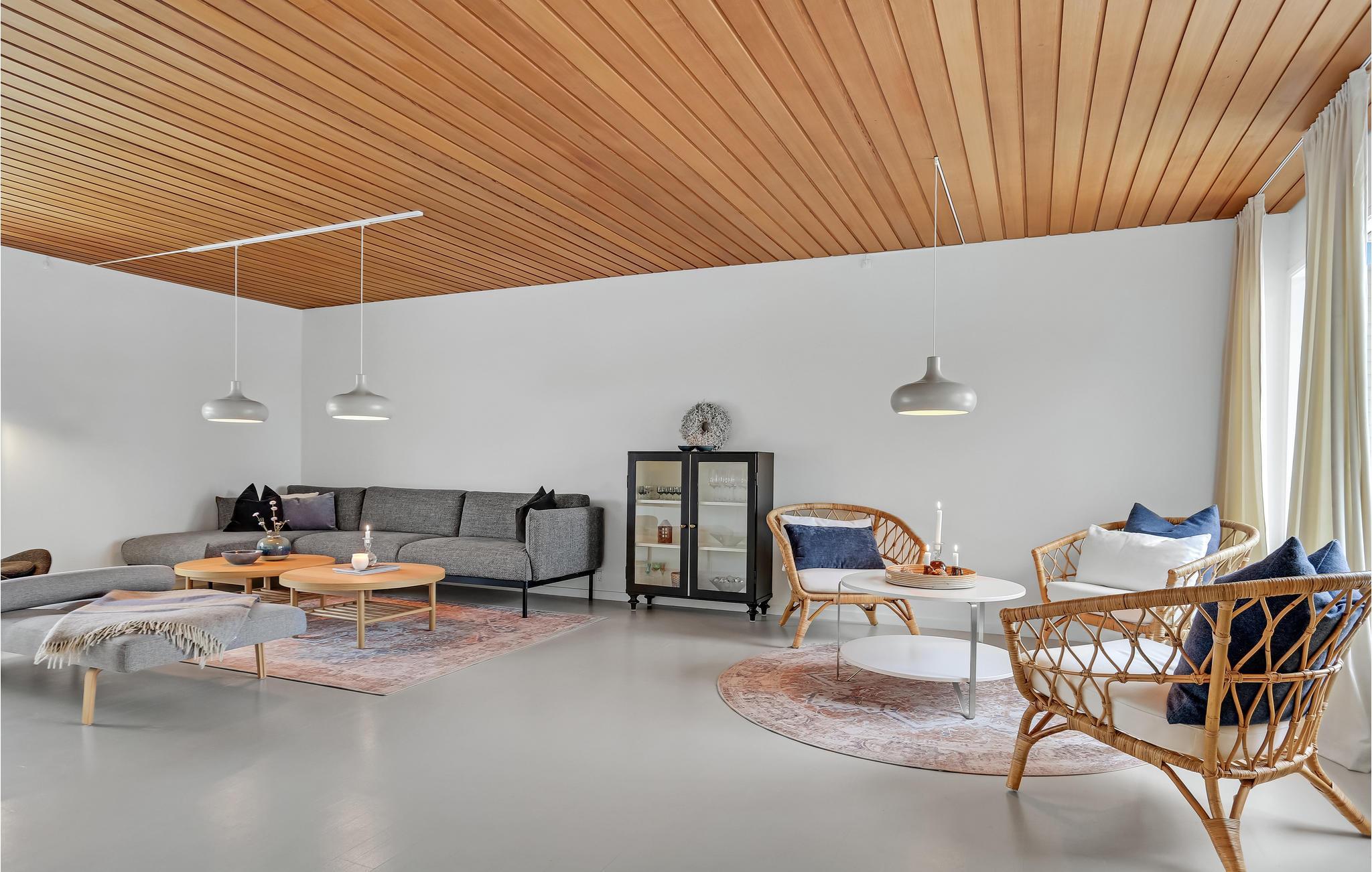 Huset bærer præg af trælofter og et tidløse designløsninger, hvilket gør det til et sted, hvor det er nemt at slappe af. Glæd jer til hyggelige aftener rundt om det lange spisebord, og når I trænger til at læne jer rigtigt tilbage, kan I rykke over i det elegante sofahjørne. Lyt til flammernes knitren i pejsen, som bidrager ekstra til stemningen på de kølige dage.
