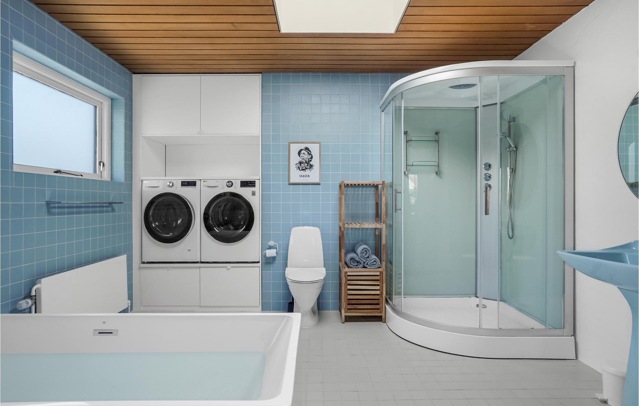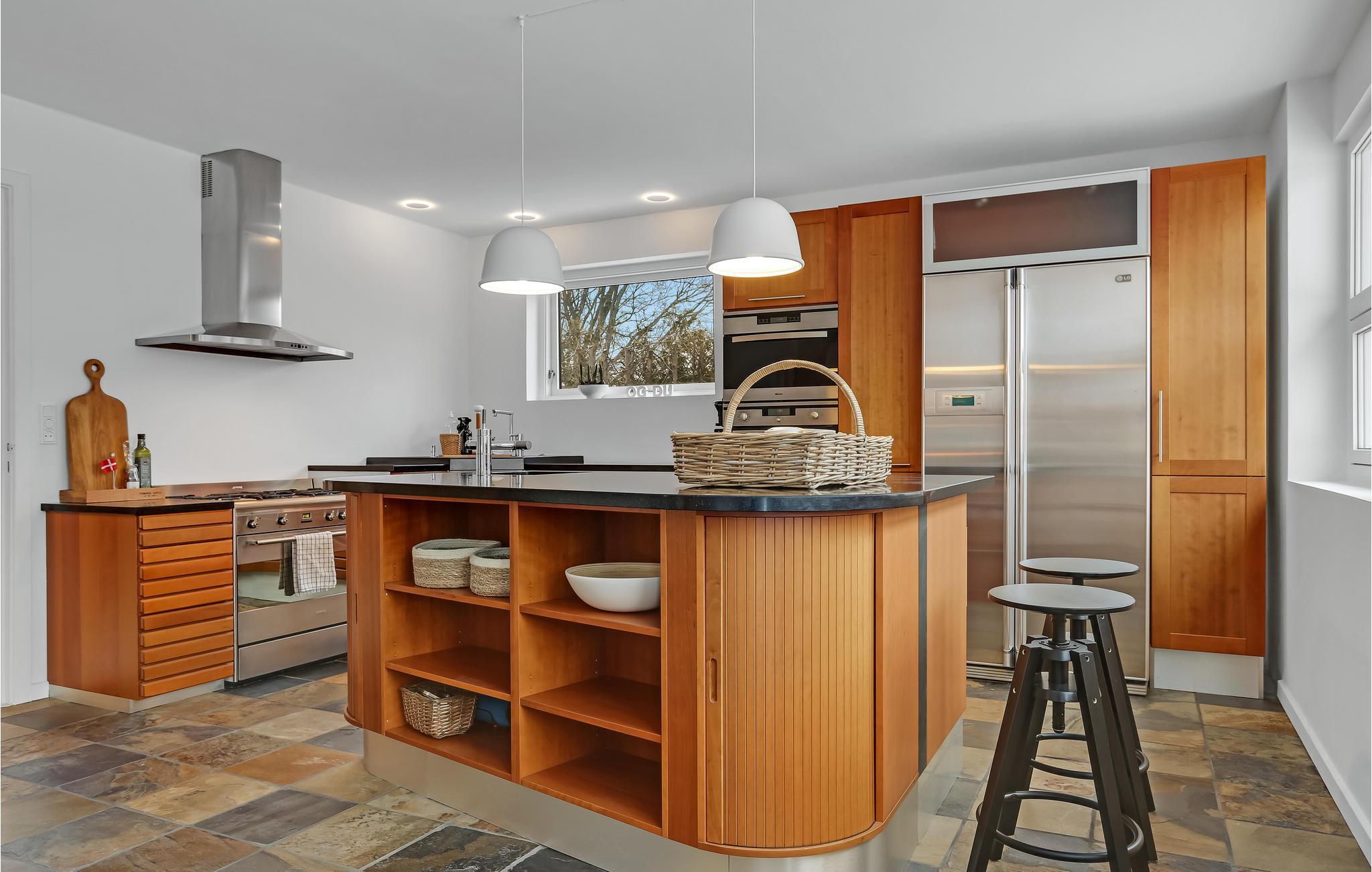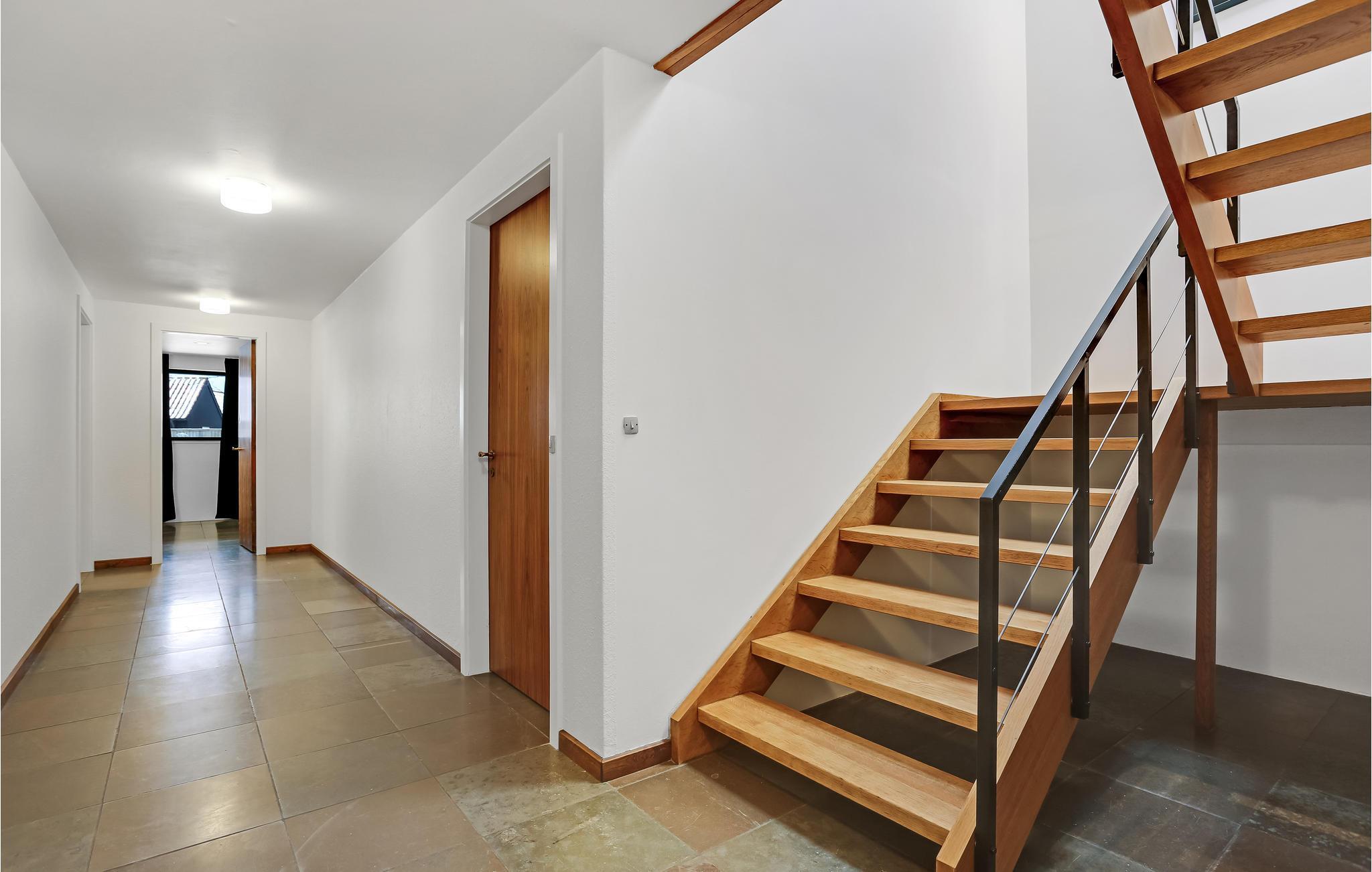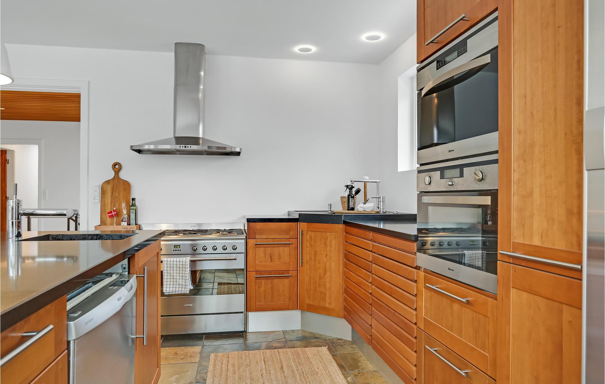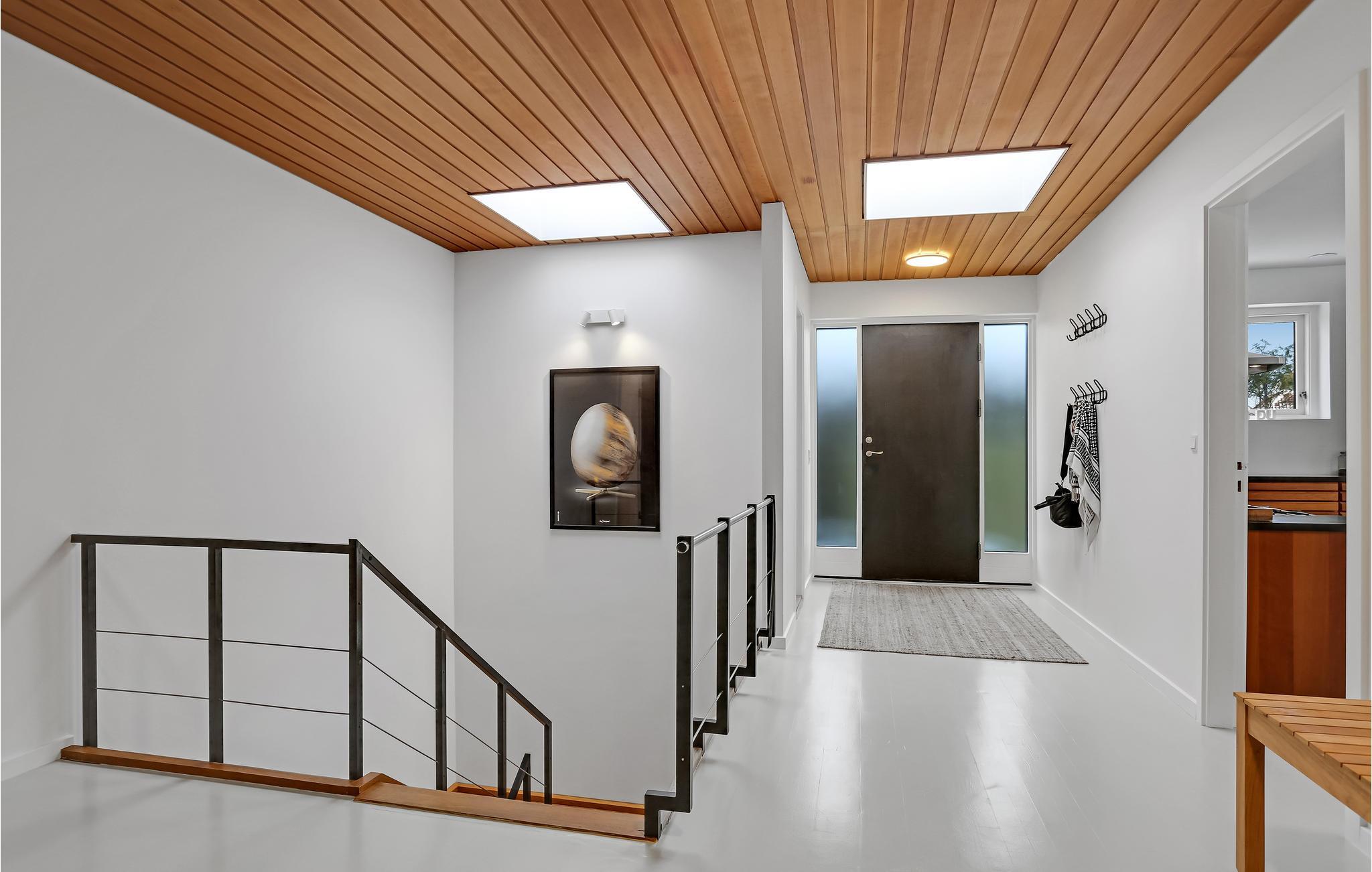 Huset bærer præg af trælofter og et tidløse designløsninger, hvilket gør det til et sted, hvor det er nemt at slappe af. Glæd jer til hyggelige aftener rundt om det lange spisebord, og når I trænger til at læne jer rigtigt tilbage, kan I rykke over i det elegante sofahjørne. Lyt til flammernes knitren i pejsen, som bidrager ekstra til stemningen på de kølige dage.