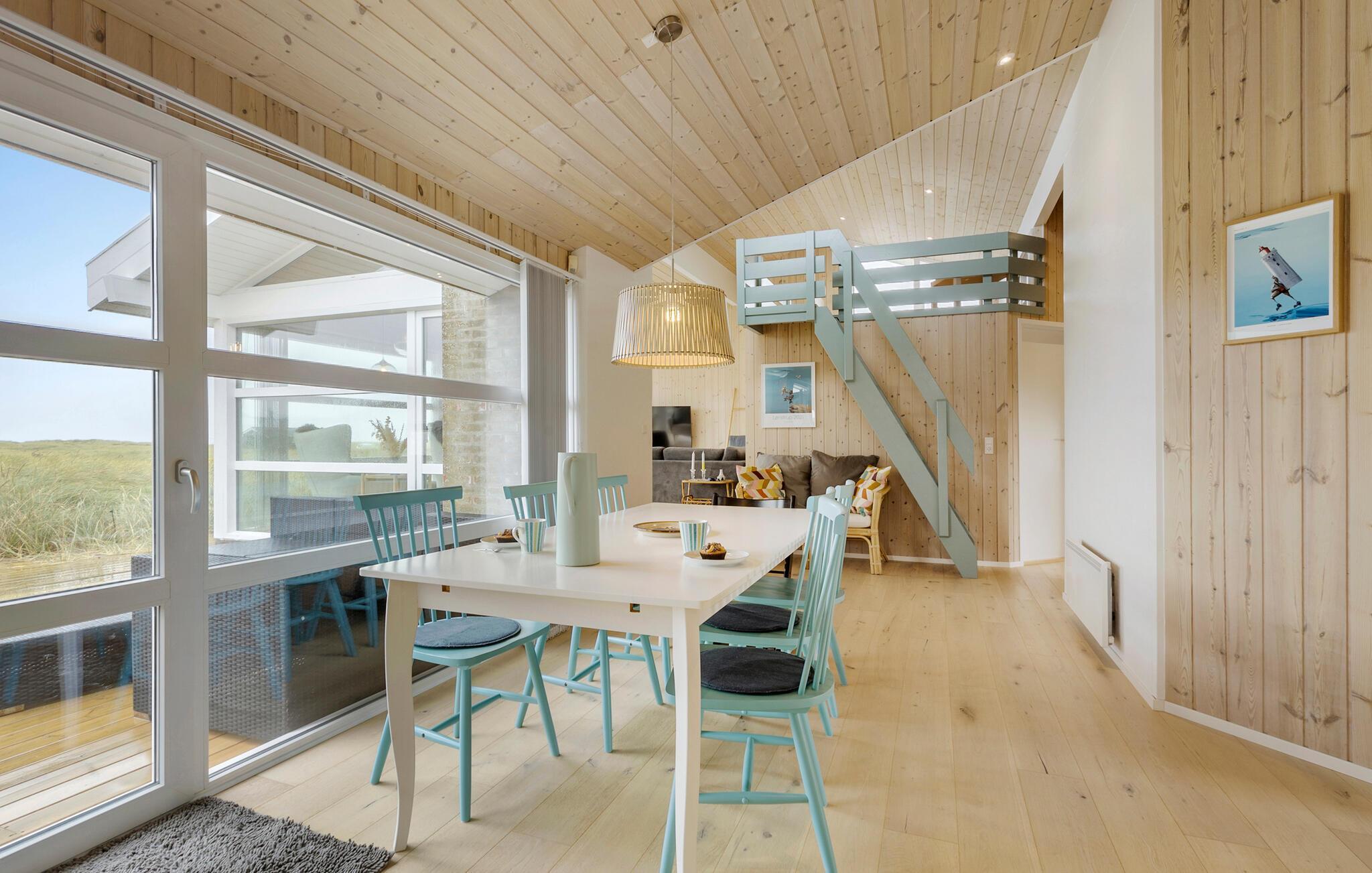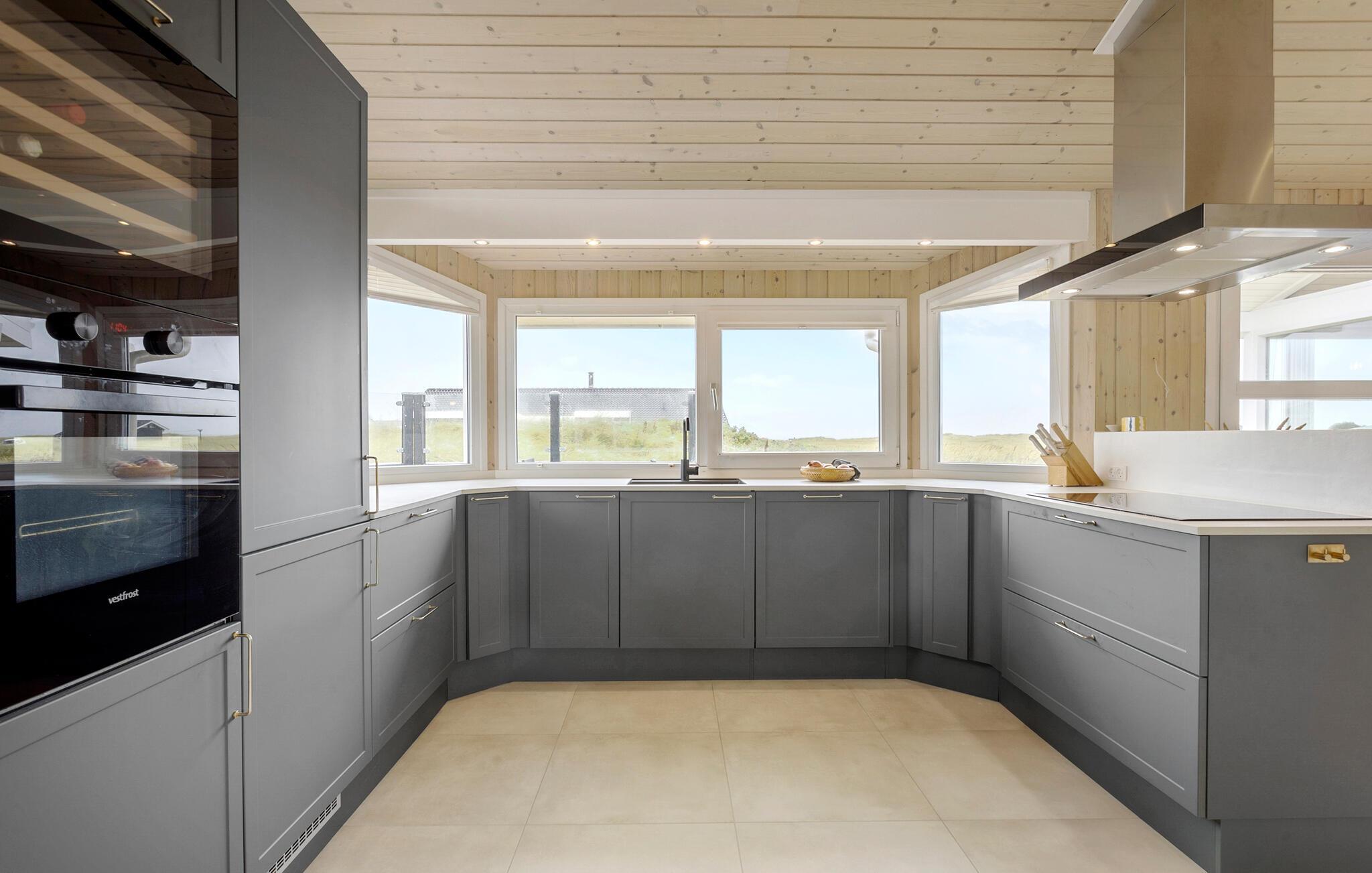 Det moderne køkken indbyder til at tilberede lækre måltider, som I kan nyde ved spisebordet med udsigt til klitterne. På den store terrasse kan I slappe af i solen, ligge på de komfortable liggestole eller grille sammen med familie og venner. Afslut dagen med et glas vin i solnedgangen, eller brug husets sauna til at slappe af i varmen.