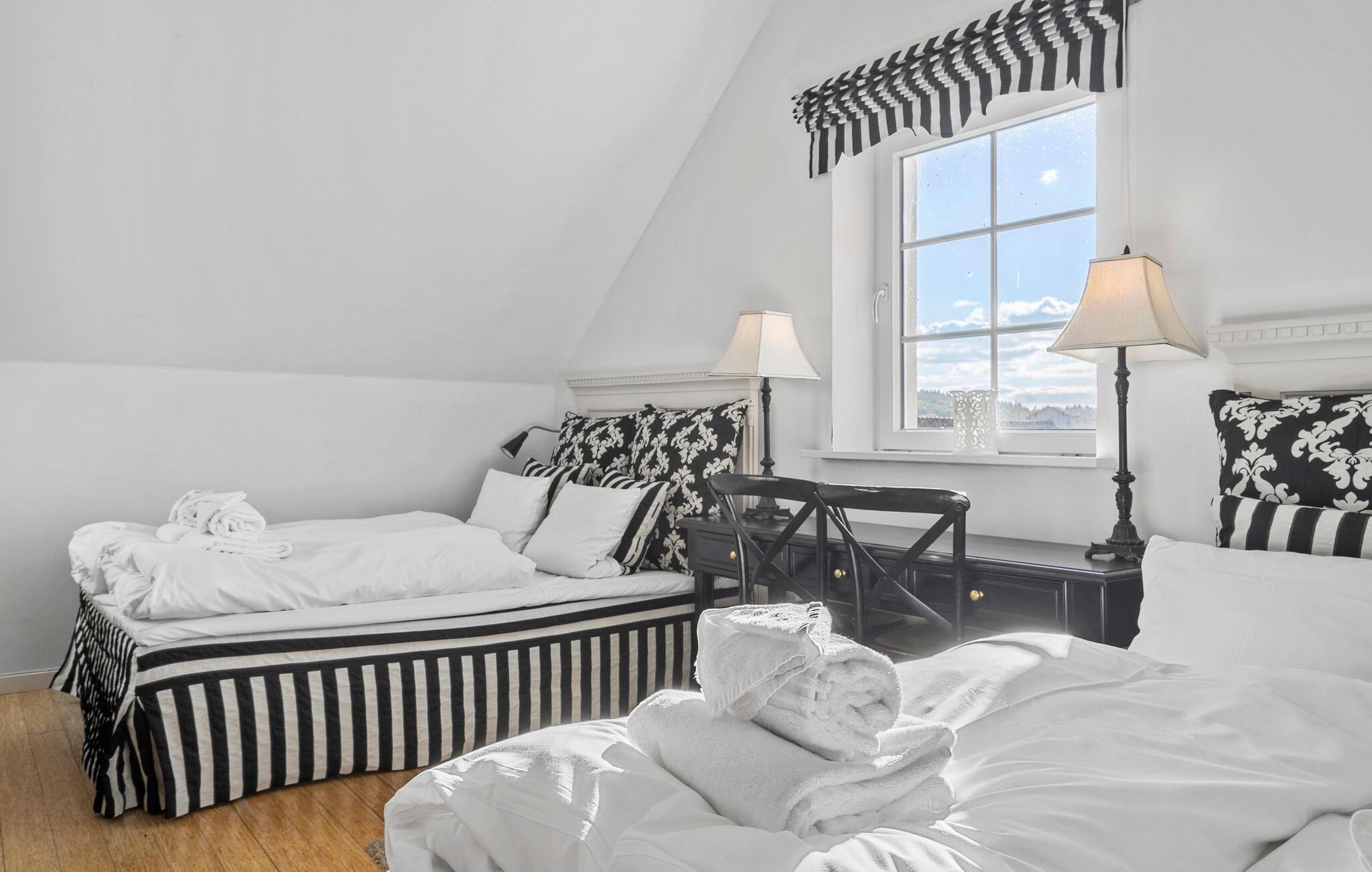Velkommen til den historiske atmosfære på Sophiendal Slot. Her venter jer et fantastisk ophold på en prægtig gammel herregård, omgivet af det maleriske sølandskab nord for Skanderborg. Huset er stilfuldt møbleret, så det passer perfekt til det herskabelige miljø i jeres feriebolig. I det veludstyrede køkken kan I tilberede lækre måltider, som I derefter kan nyde ved en elegant middag ved spisebordet. Efter en begivenhedsrig dag kan I slappe af i den hyggelige stue med den komfortable sofagruppe.