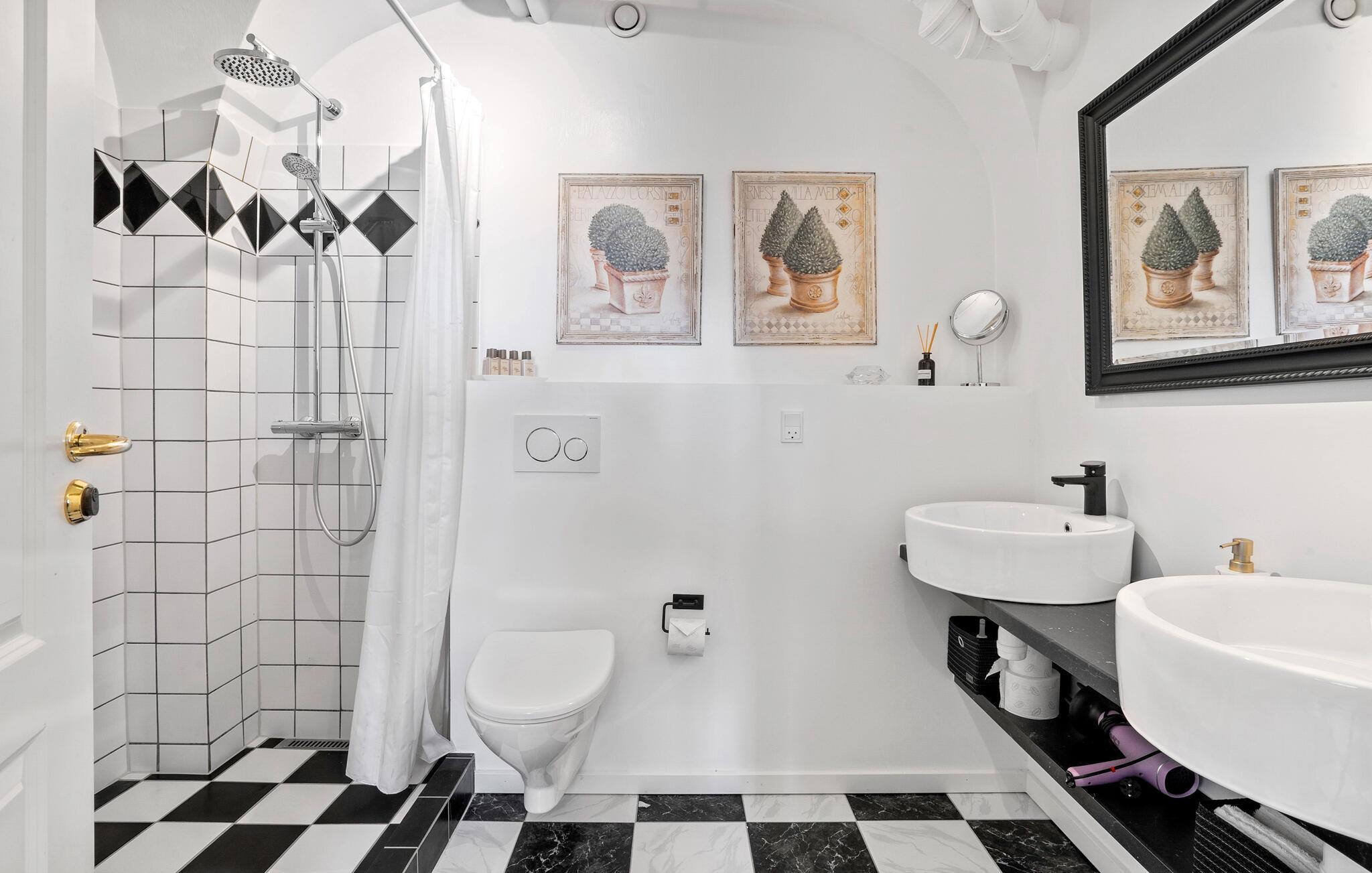 Badeværelse (nr. 1) - WC. Varmt og koldt vand. Bruser
