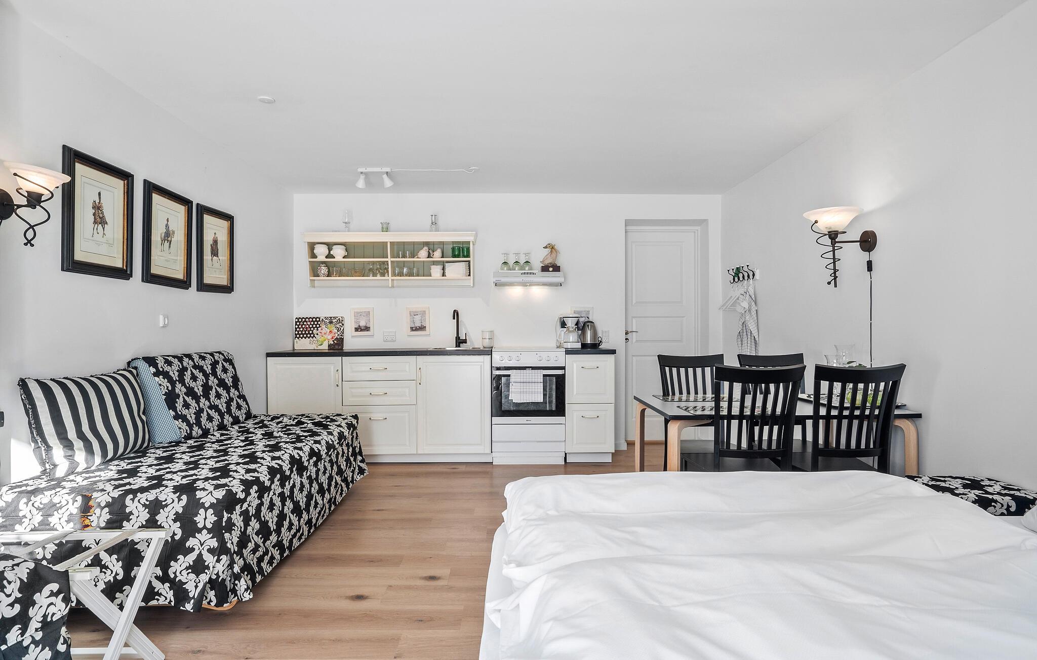 Glæd jer til et ophold fyldt med elegance og historie på Sophiendal Slot, omgivet af det fortryllende sølandskab nord for Skanderborg. Denne pragtfulde ferielejlighed, indrettet med elegante møbler, skaber den ideelle ramme for en særlig ferie. Tilbered måltider i det praktisk indrettede køkken, nyd en middag ved det tilstødende spisebord og mærk den herskabelige atmosfære på slottet. Efter en oplevelsesrig dag kan I gøre det behageligt i den komfortable sofa og lade indtrykkene bundfælde sig i ro og mag.