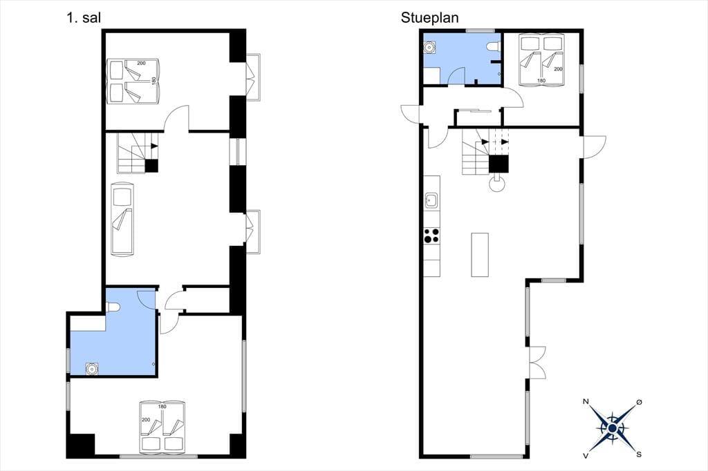 Der behøver ikke være kamp om de tre soveværelser, for de har alle udsigt til havet, og du kan såmænd ligge i sengen og både se og høre havets brusen lige uden for. Når du står op, kan du fra terrasserne på både 1. salen eller i stueplan indånde den friske havluft inden dagens første havbad. Fra både 1. salen og stueplan er der også første parket til udsigt til solopgangen og havet overalt, så det bliver svært at holde øjnene væk fra naturens panorama. Omkring spisebordet ved brændeovnen og det åbne køkken, kan du året rundt holde øje med havet, afvekslende med kort- og brætspil eller bare en god snak med vennerne og familien, eller et godt måltid mad. Kaffen kan I så passende tage med ovenpå og fortsat kikke ud mod bugten, inden dagen går på hæld.