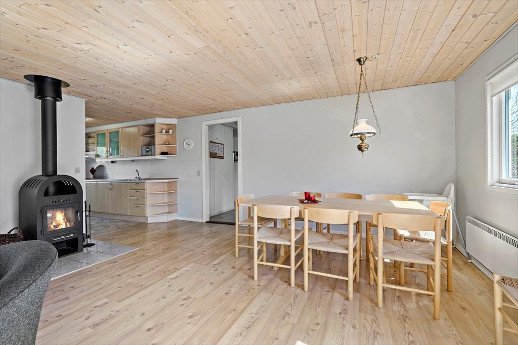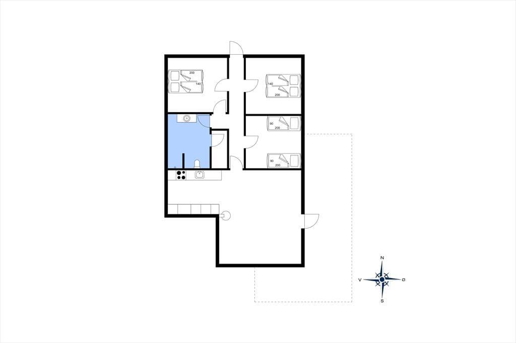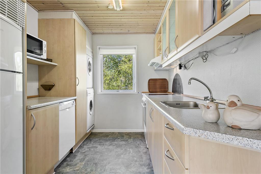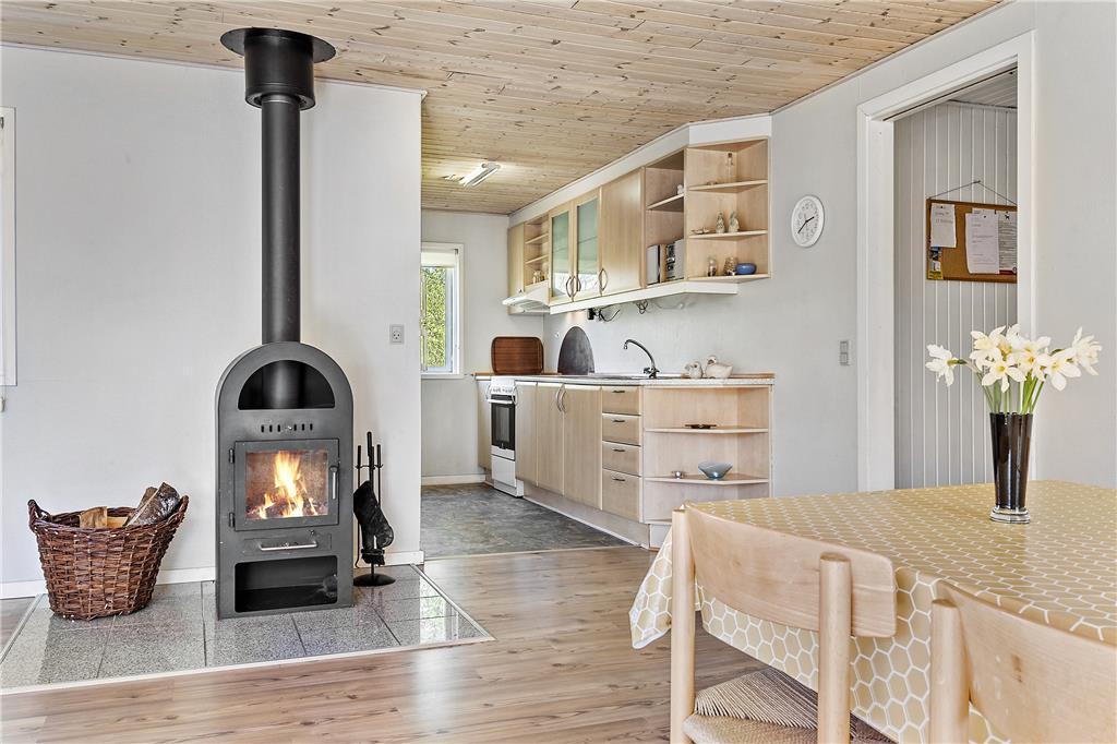 Sommerhusets 90 m2 er fornuftigt udnyttet, og planløsningen er god, så I kan sagtens være op til seks personer samlet. To af soveværelserne er indrettet med dobbeltseng, mens det tredje byder på to enkeltsenge, og i stuen er brændeovnen med til at skrue op for varmen og hyggestemningen. I forlængelse af stuen ligger køkkenet, der er et veludstyret ét af slagsen med mikroovn, opvaskemaskine samt vaskemaskine og tørretumbler. Badeværelsets sauna er for øvrigt en af de dejlige detaljer ved sommerhuset, for når I kommer hjem fra surfturen eller en frisk dukkert, er det herligt at kunne læne sig tilbage og blive varmet helt igennem.