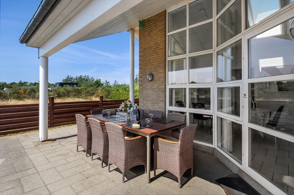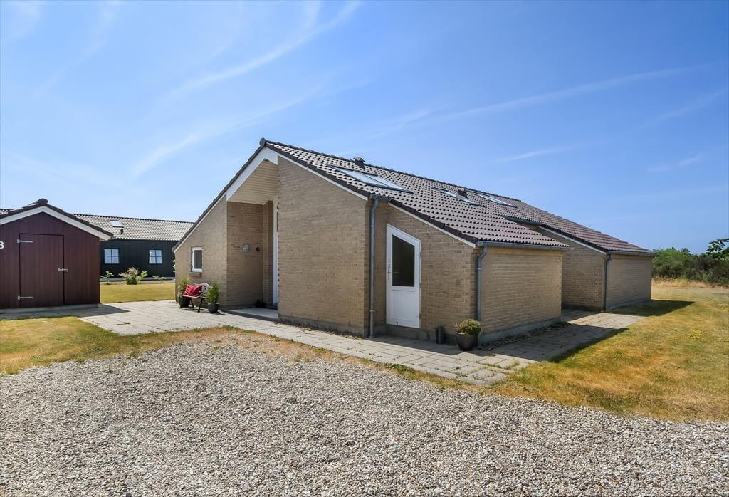 I får de bedste betingelser for at nyde livet under åben himmel på den 1416 m2 store grund. Her er der ro og fred, masser af sol og masser af frisk luft – alt det, man drømmer om på ferieturen. Familiens yngste vil med sikkerhed begejstres over den store plæne, der egner sig perfekt til leg og boldspil – og som ekstra bonus medfølger der i haven også et legestativ med gynge og rutsjebane. Når dagen går på hæld, kan I tænde op i grillen og dække op til en hyggelig middag på terrassen – det er sommerhusliv, når det er bedst. Terrassen er tilmed overdækket, så her kan I nyde aftenstunden, selvom der falder lidt dug fra oven.
