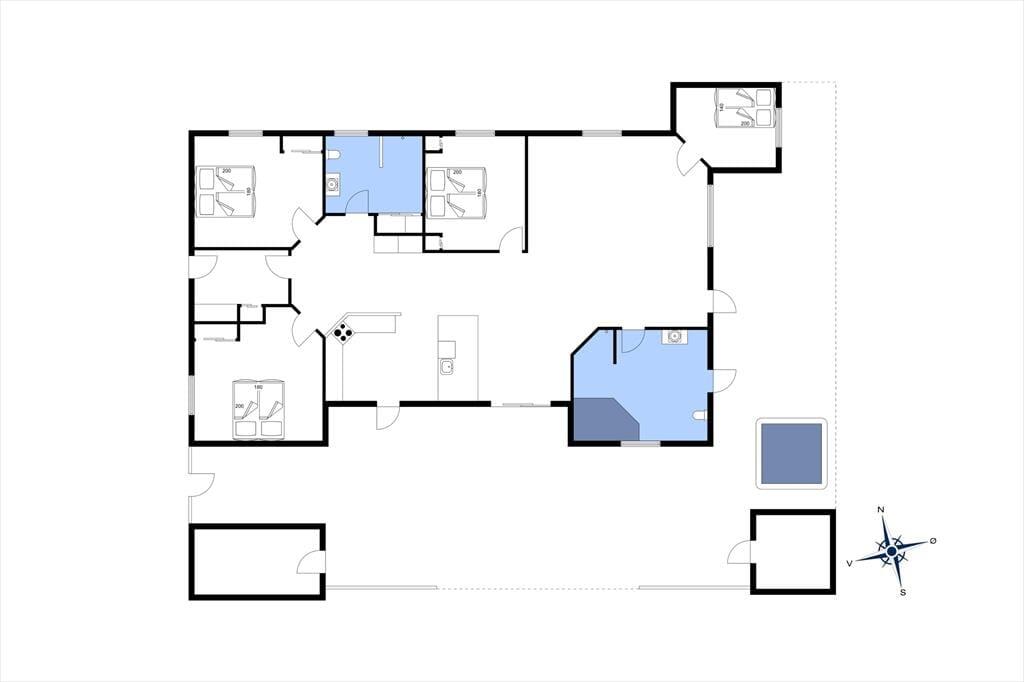 Inde i sommerhuset bliver I mødt af et lyst og åbent miljø, hvor indretningen kombinerer moderne komfort med en afslappet sommerhusstemning. De store vinduespartier inviterer lyset og naturen indenfor, og der er god plads til at samle hele familien omkring spisebordet eller i sofaen til en filmaften, et brætspil eller bare ren afslapning. Stemningen er varm og indbydende, og selv når vinden suser udenfor, er der lunt og rart indendøre. Når dagens eventyr er veloverståede, kan I forkæle jer selv med en tur i et af husets spabade eller lade dagens sidste spændinger smelte væk i saunaen. Her er der tænkt på alt det, der gør ferien ekstra behagelig.