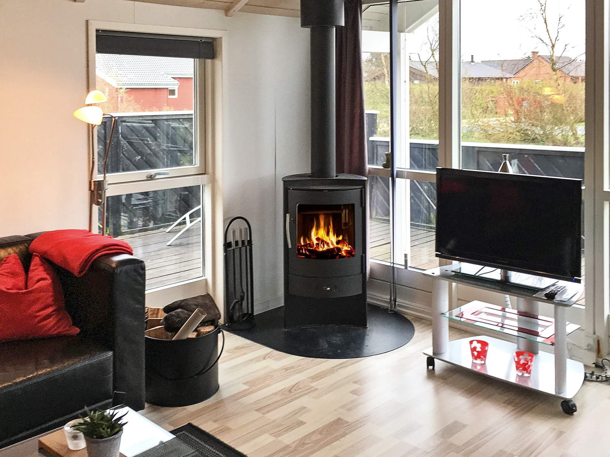 1 Opholdsstue: Brændeovn, stereoanlæg, tv, parabol